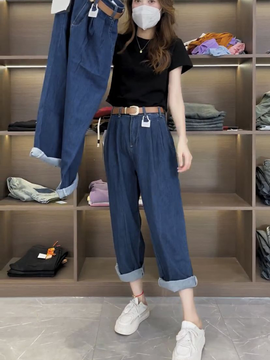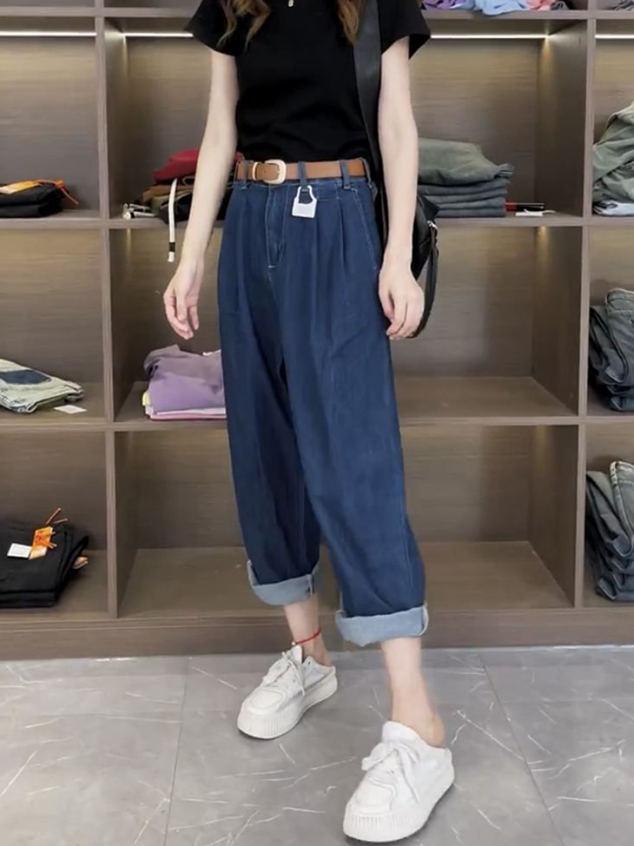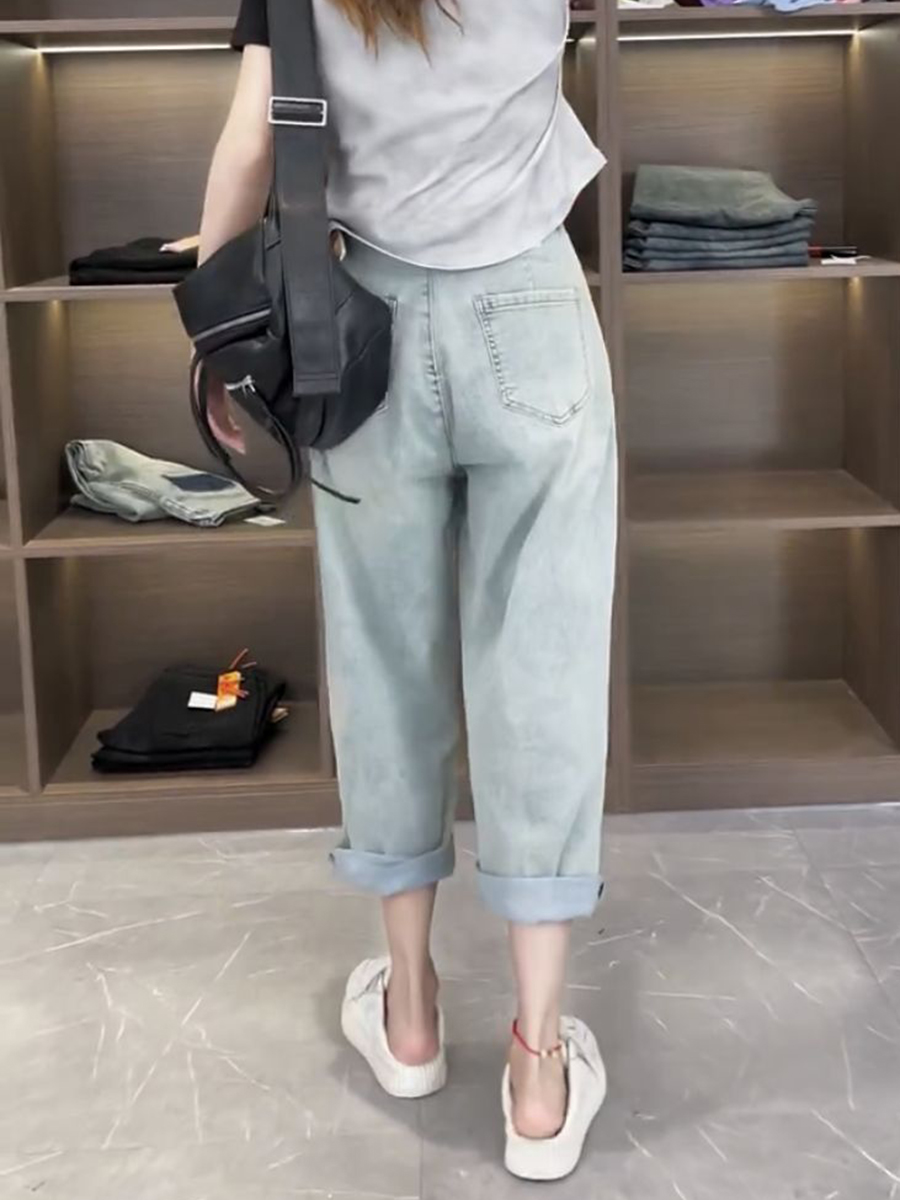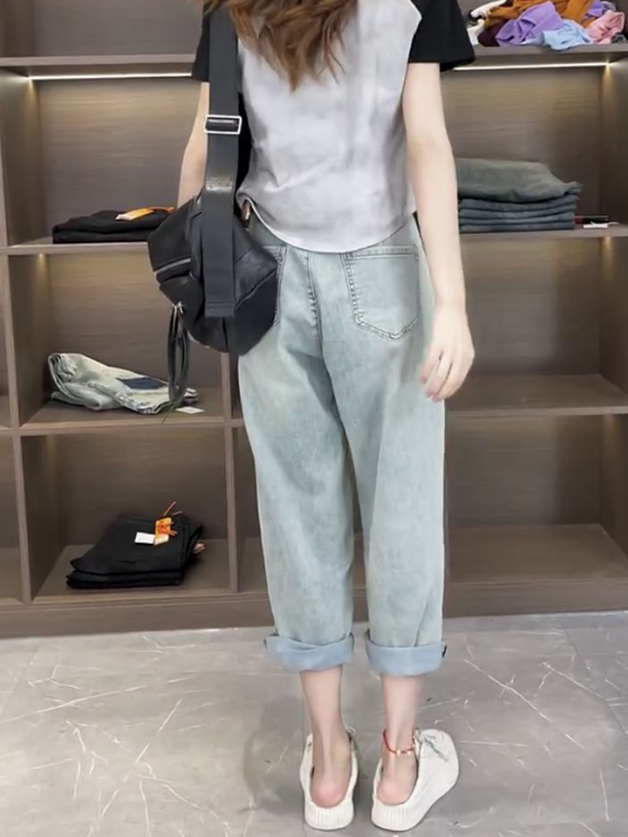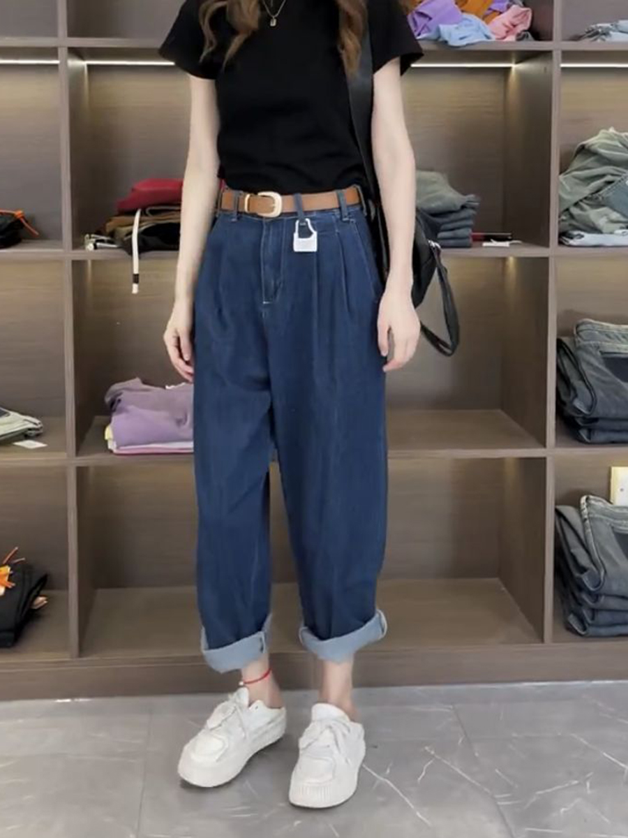 Джинсы, летние тонкие штаны, для формы тела «груша», большой размер, коллекция 2023