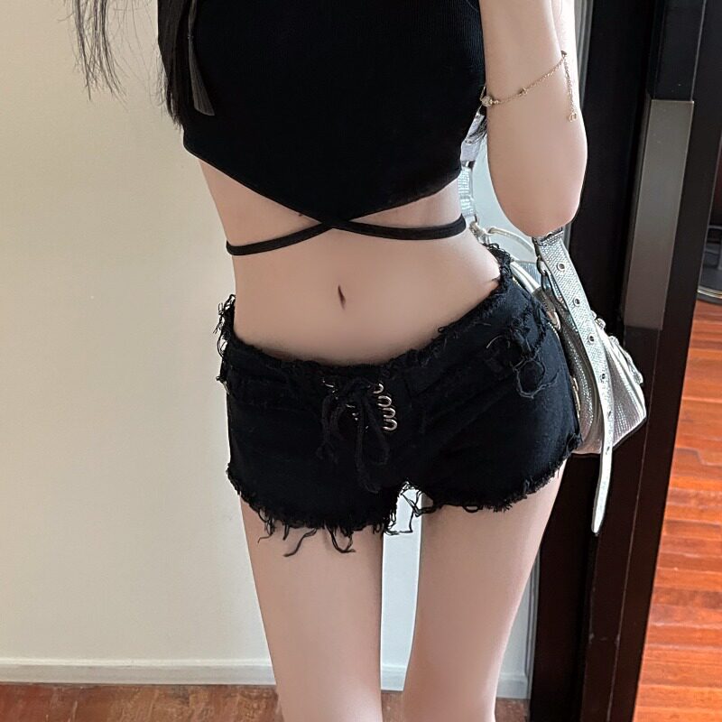 Дизайнерские черные джинсовые шорты, сексуальные модные штаны с молнией, тренд сезона, свободный крой