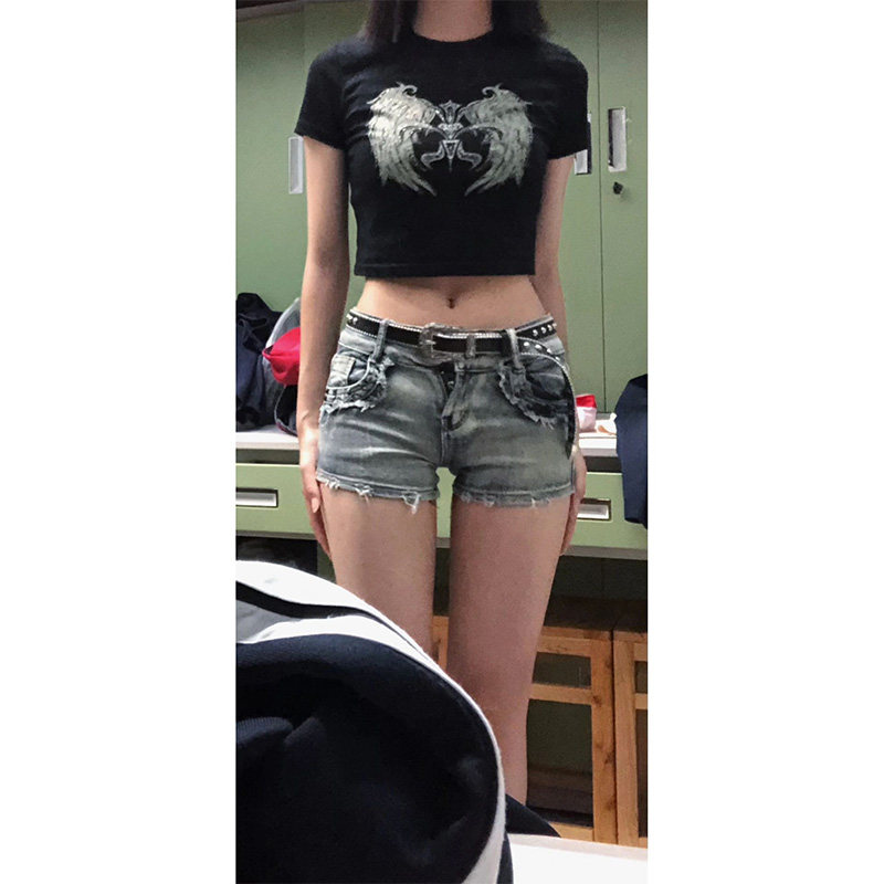 Сексуальная джинсовая юбка, шорты, приталенные штаны, в американском стиле, с акцентом на бедрах, свободный прямой крой
