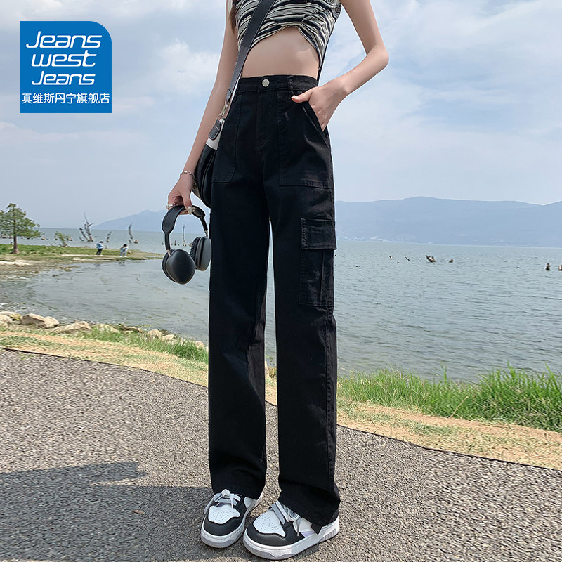 Черные джинсовые осенние леггинсы, штаны, высокая талия, в американском стиле, свободный крой