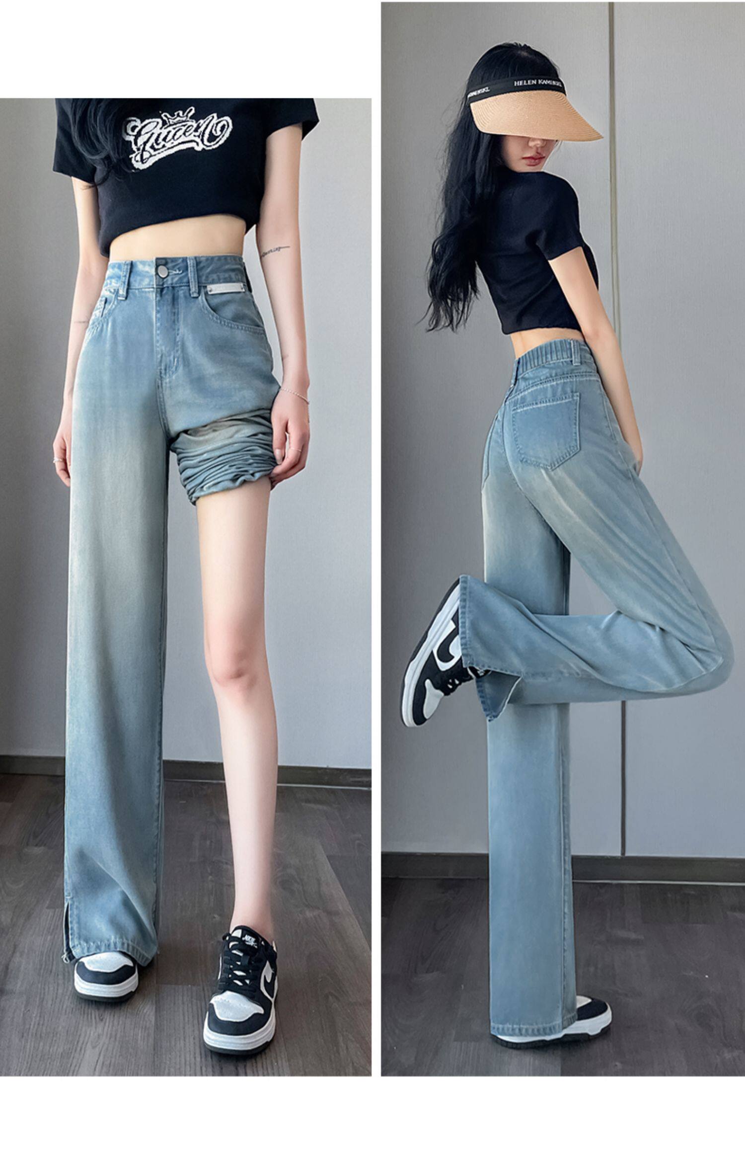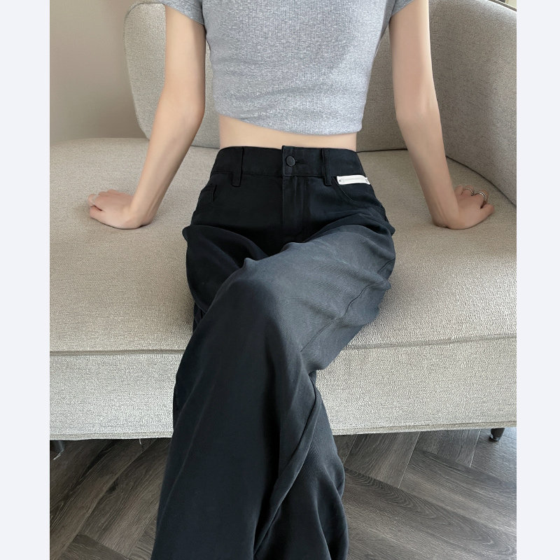 Черные тонкие джинсы, шелковые штаны, коллекция 2023, высокая талия, свободный прямой крой