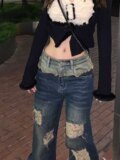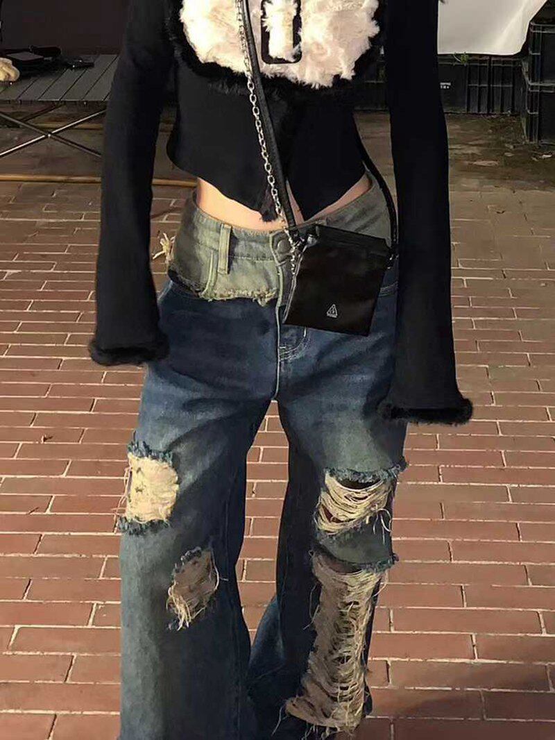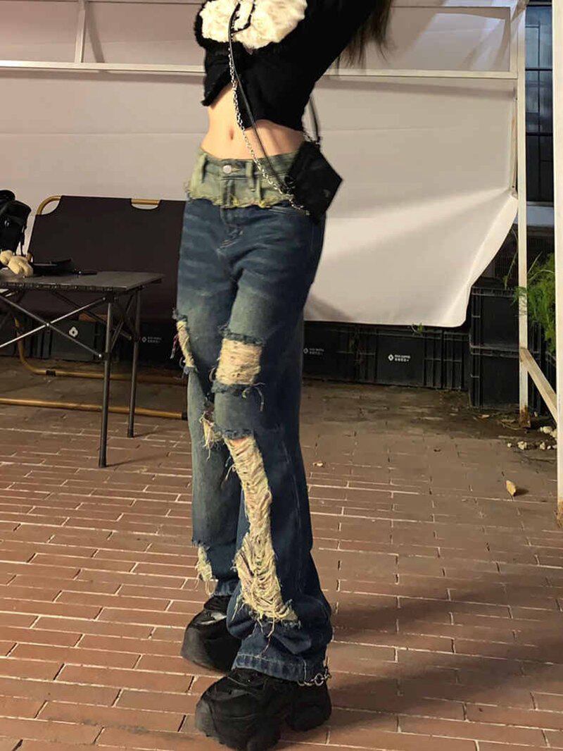 Ретро джинсы, летние штаны, большой размер, в американском стиле, высокая талия, оверсайз, свободный крой