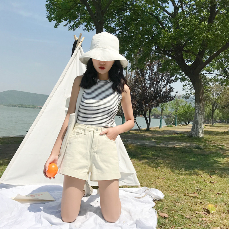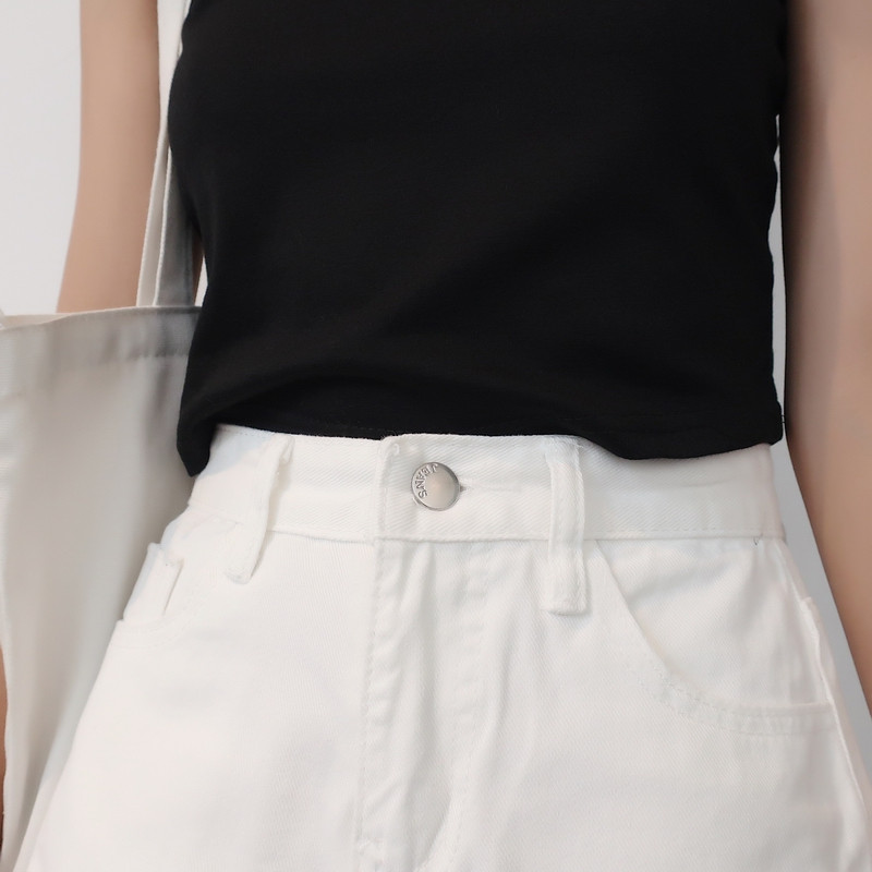 Летняя белая джинсовая юбка, шорты, приталенные штаны, высокая талия, свободный крой