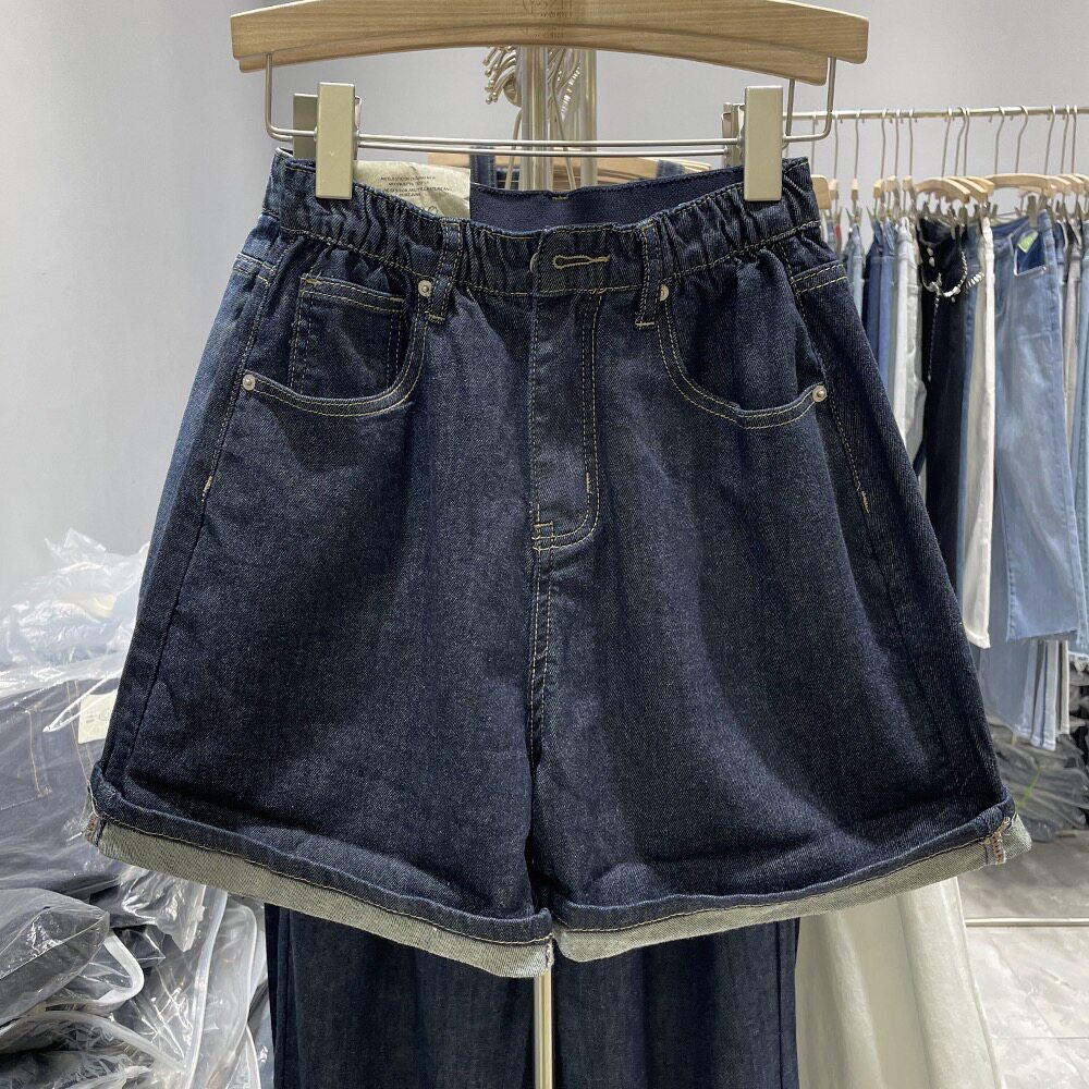 Темно-синяя джинсовая юбка, шорты, тонкие штаны, 2023, высокая талия, свободный крой, А-силуэт