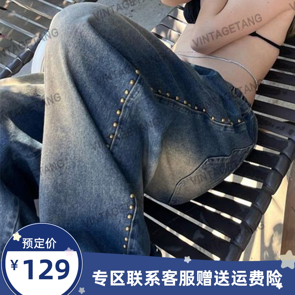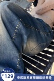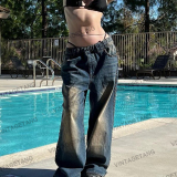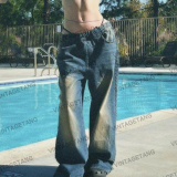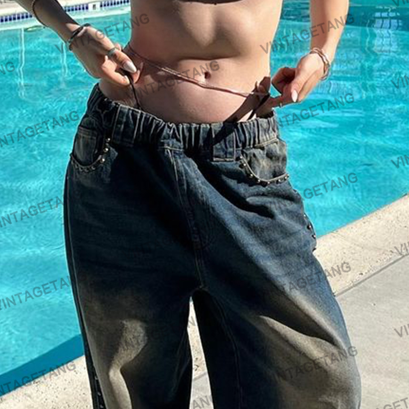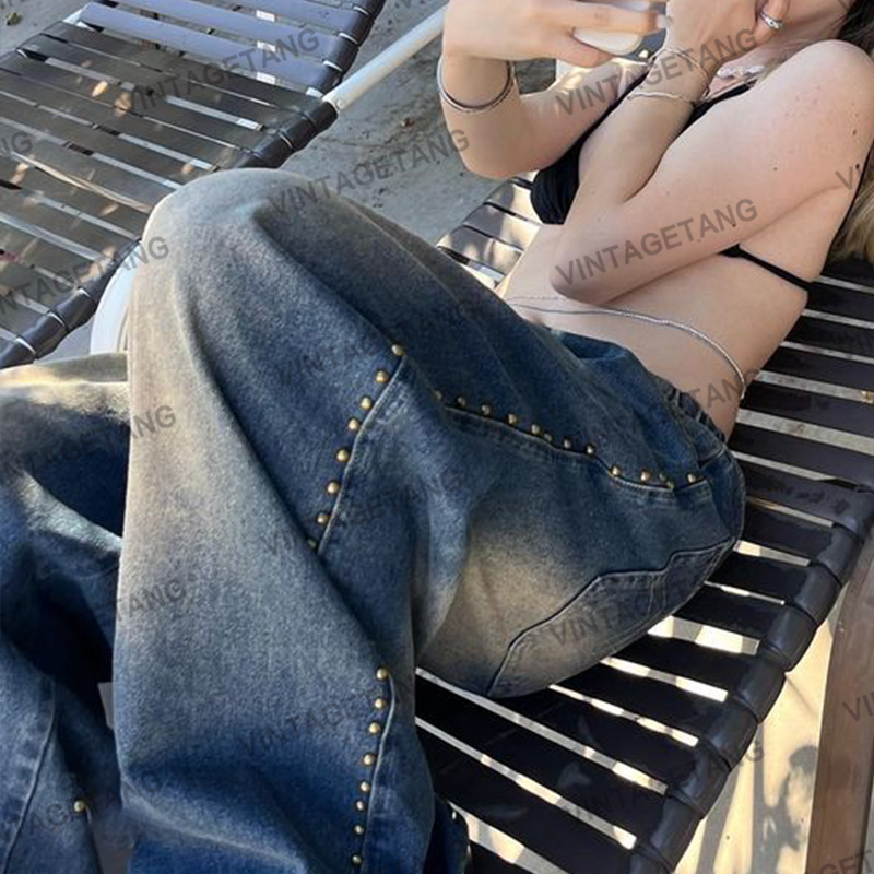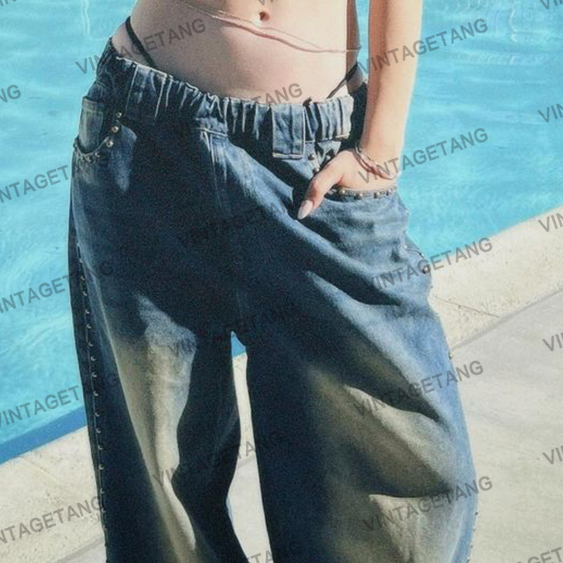 Осенние ретро синие дизайнерские джинсы, в американском стиле, свободный прямой крой, тренд сезона