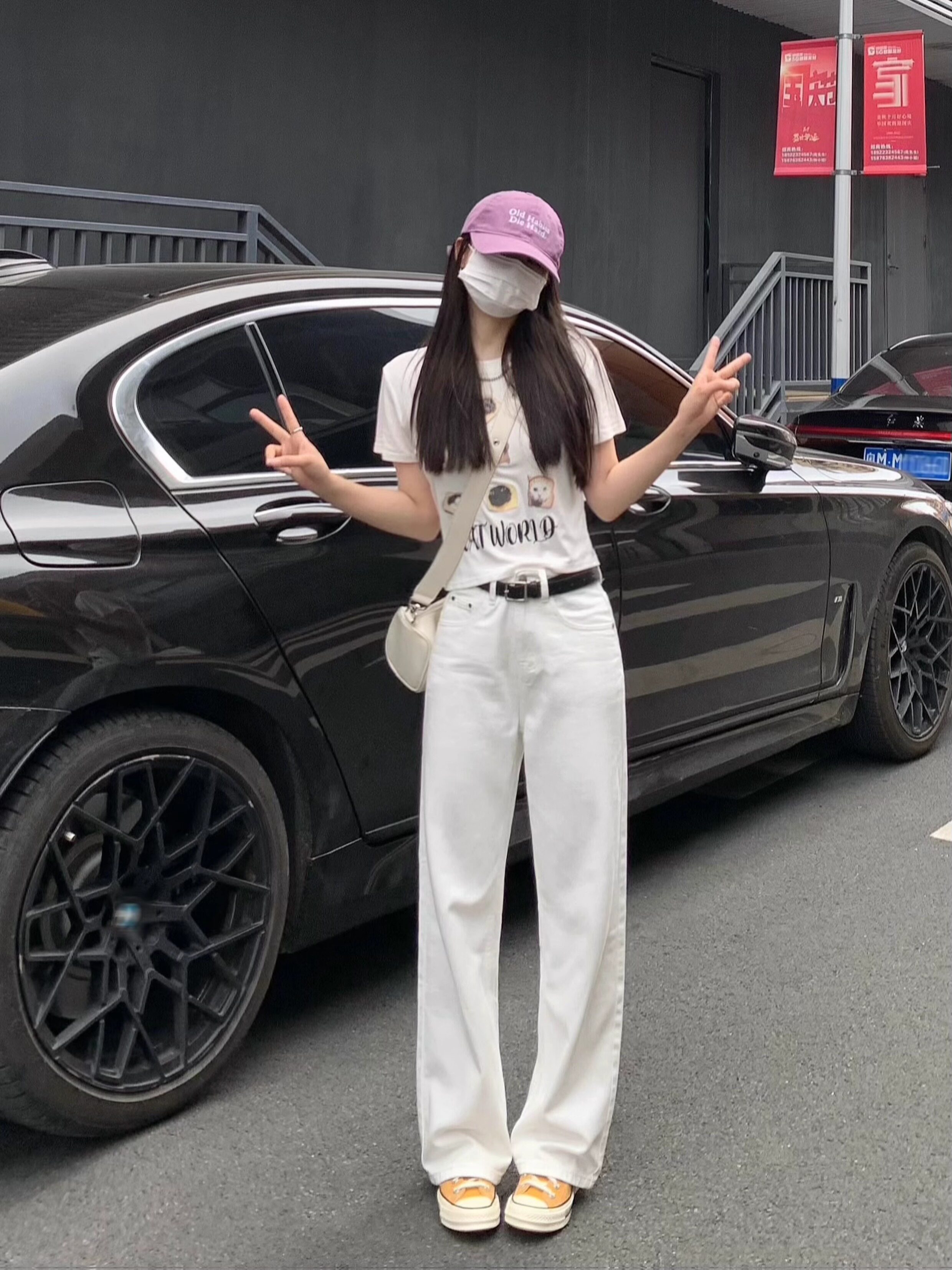 纯哥家 Белые прямые свободные джинсы, летние штаны, 2025 года, высокая талия, свободный крой