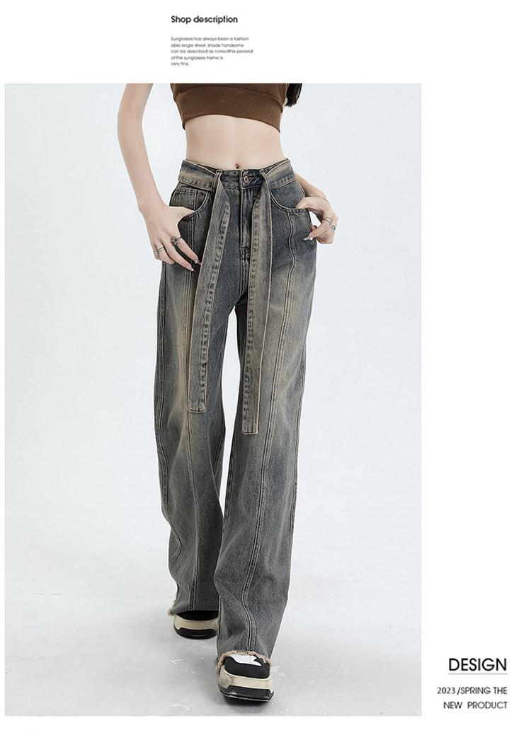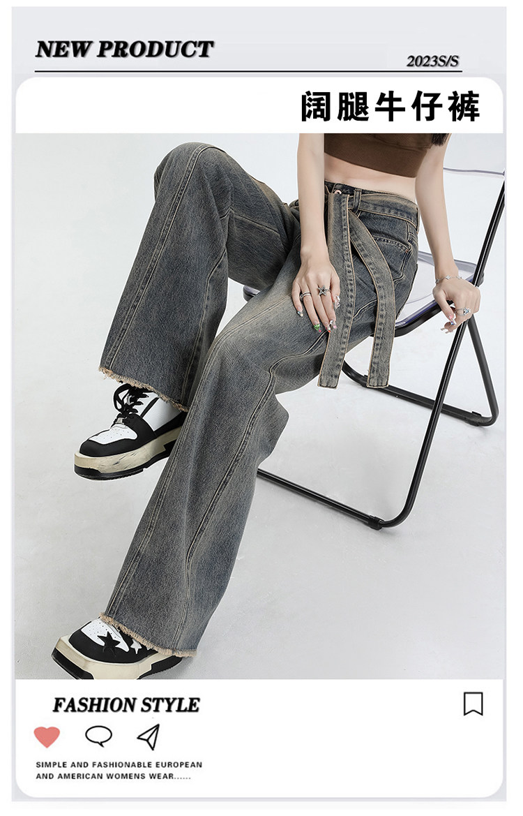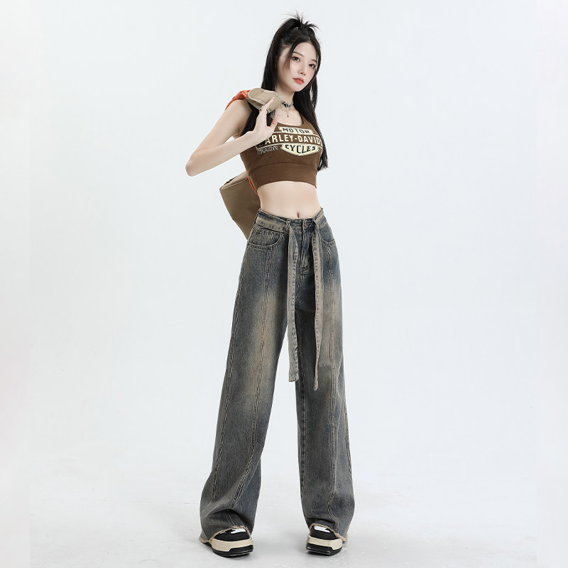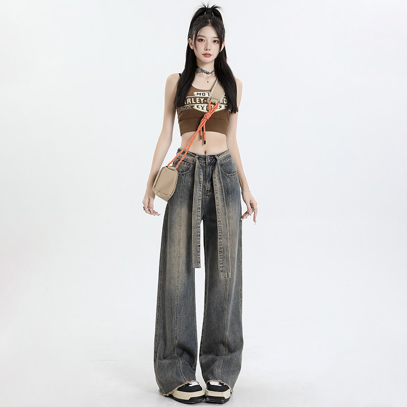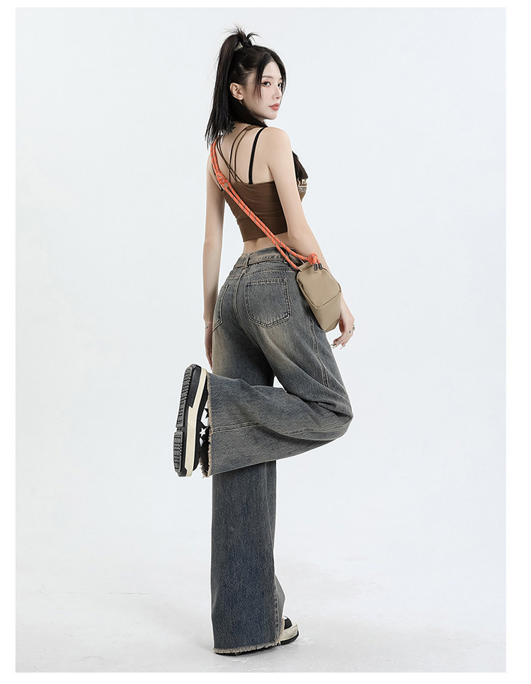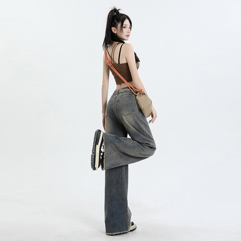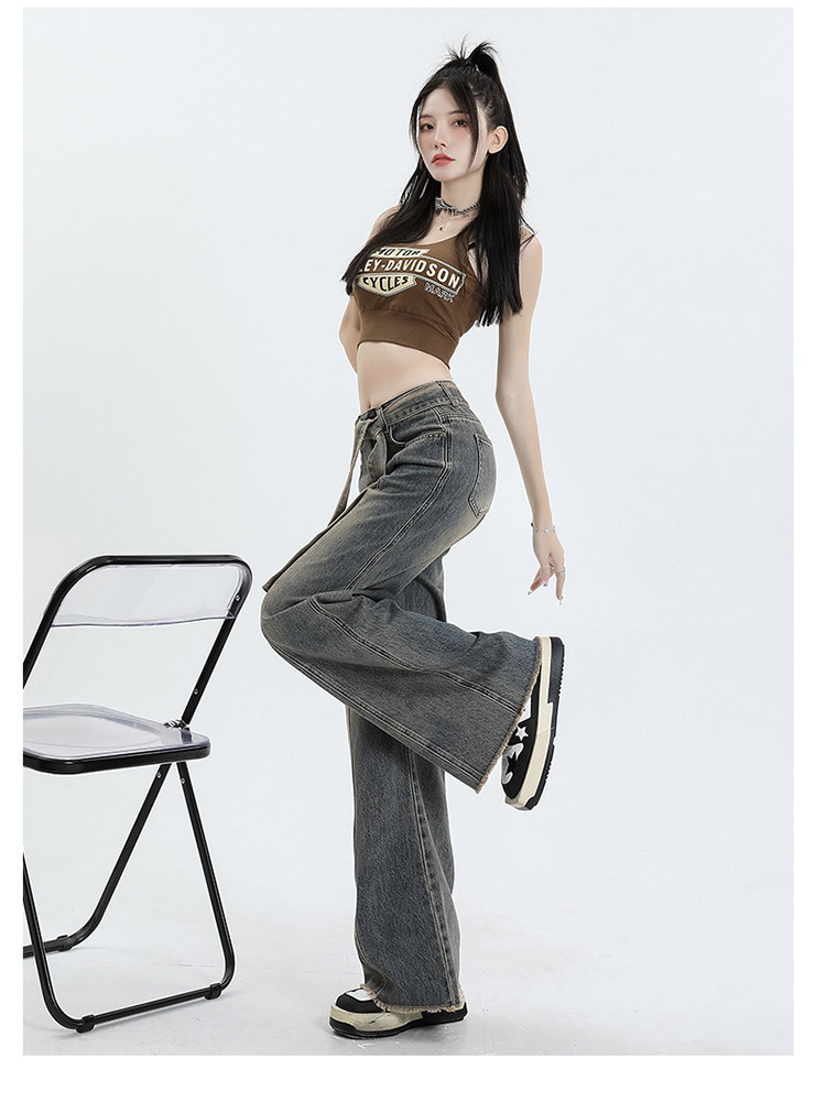 Ретро джинсы, осенние дизайнерские штаны, в американском стиле, высокая талия, тренд сезона, свободный прямой крой