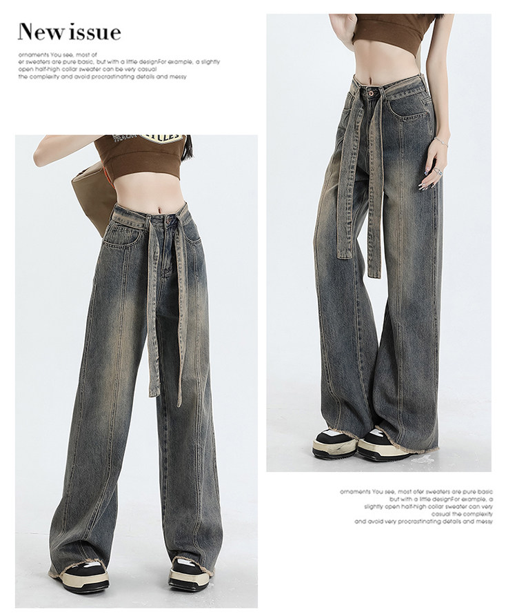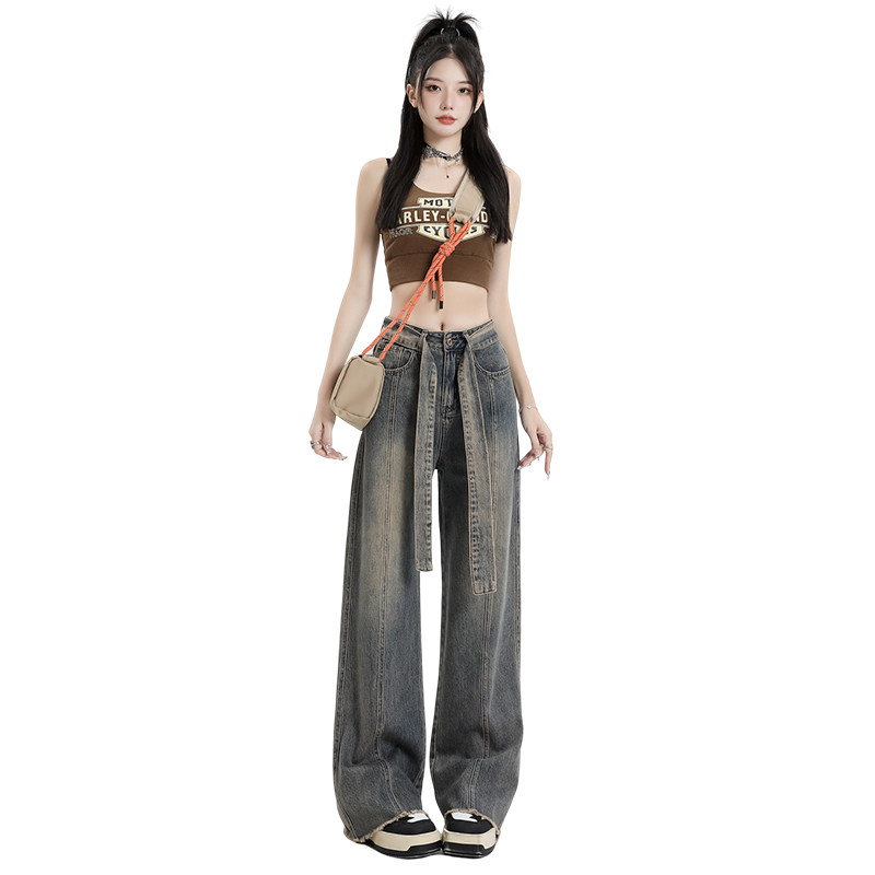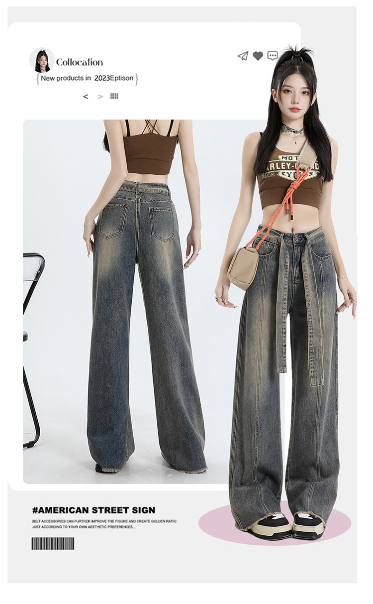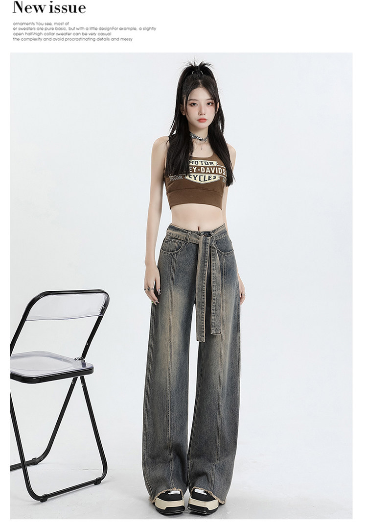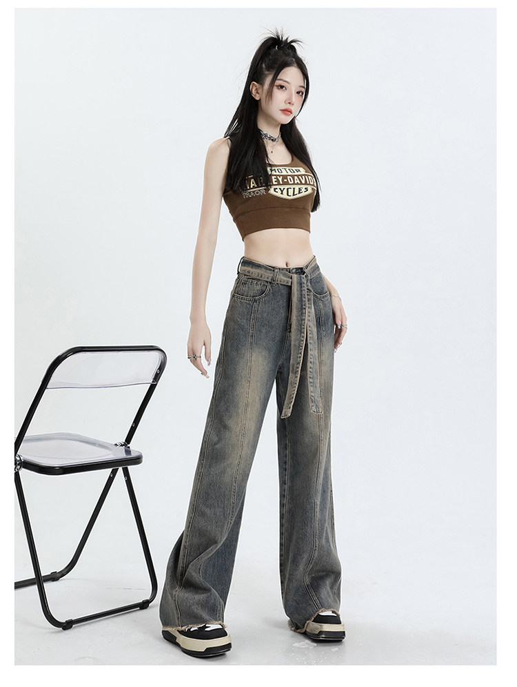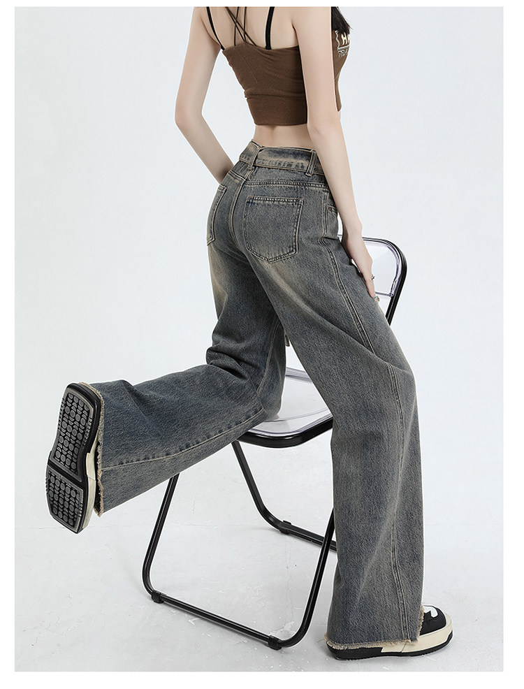 Ретро джинсы, осенние дизайнерские штаны, в американском стиле, высокая талия, тренд сезона, свободный прямой крой
