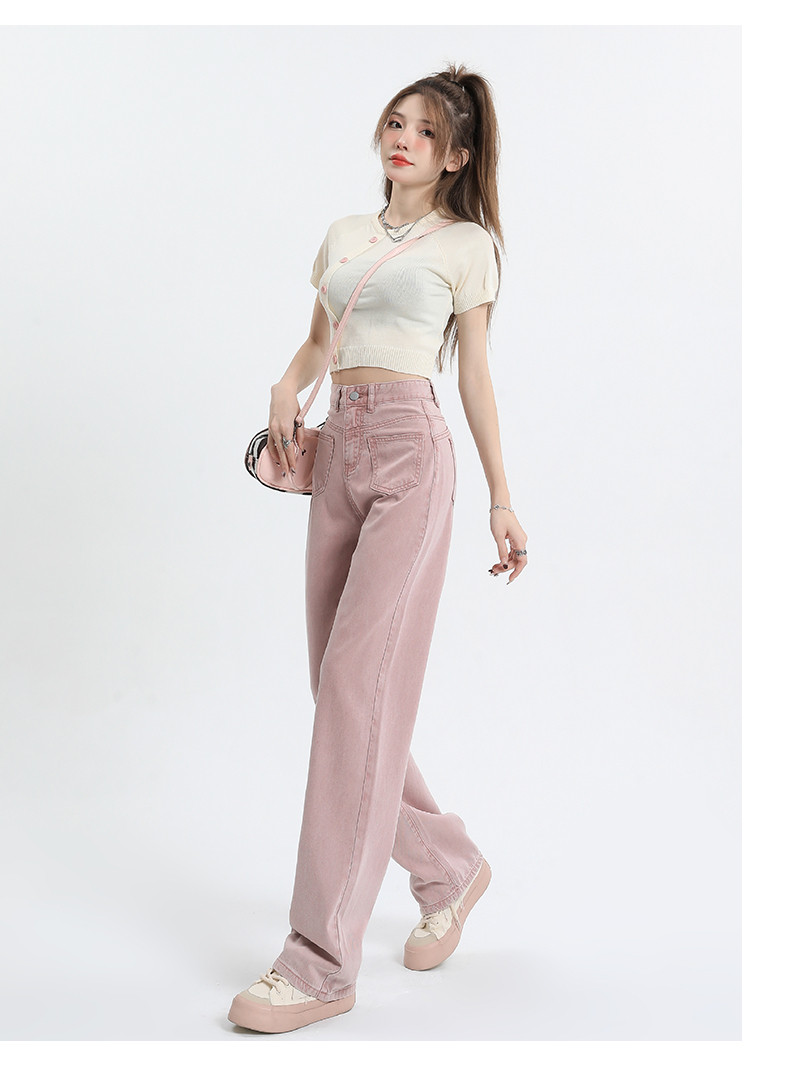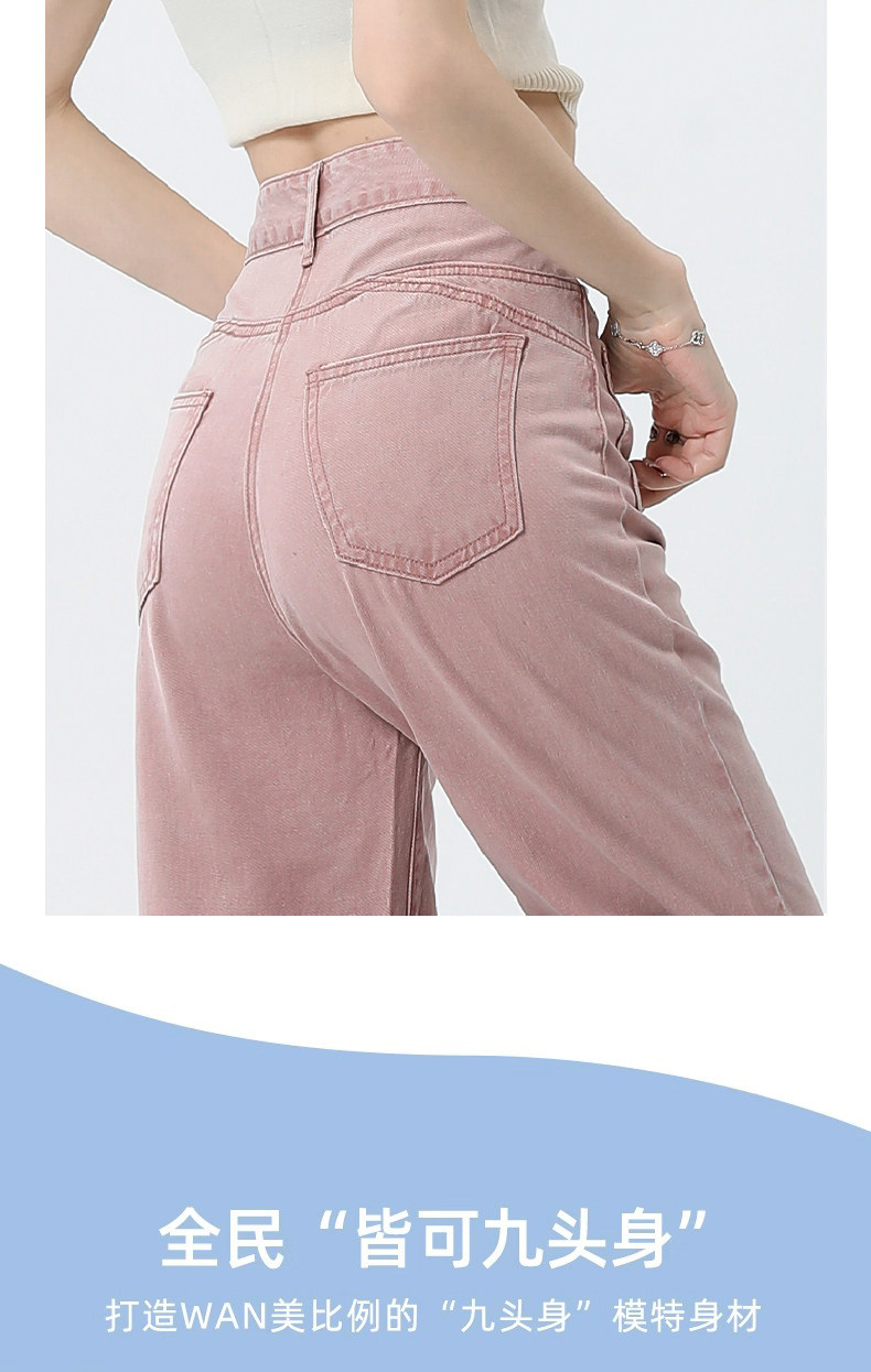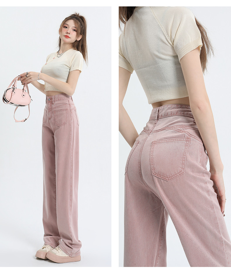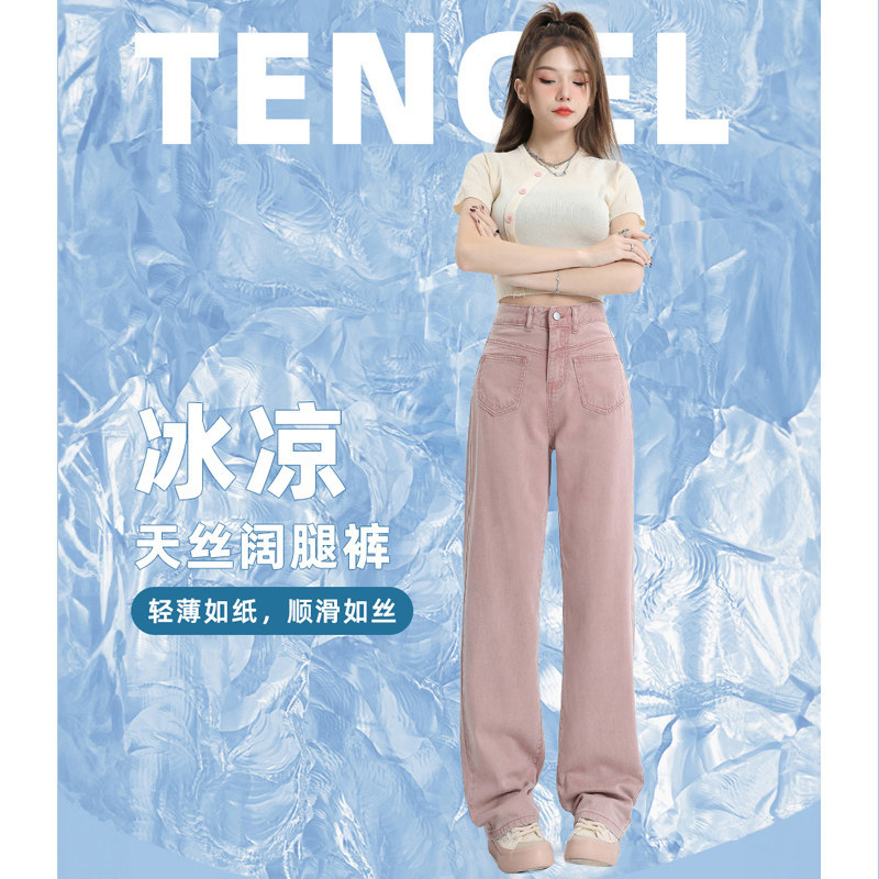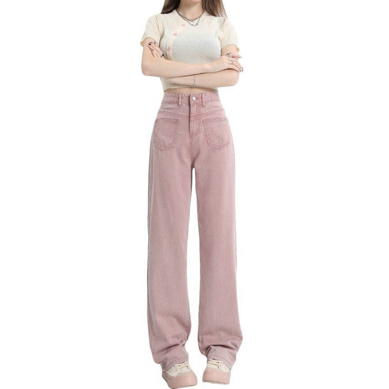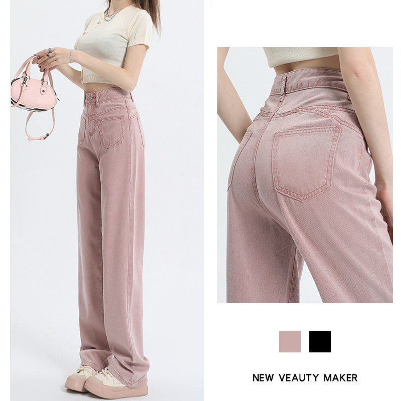 Розовые тонкие приталенные прямые свободные джинсы для отдыха, шелковые штаны, высокая талия, подходит для подростков