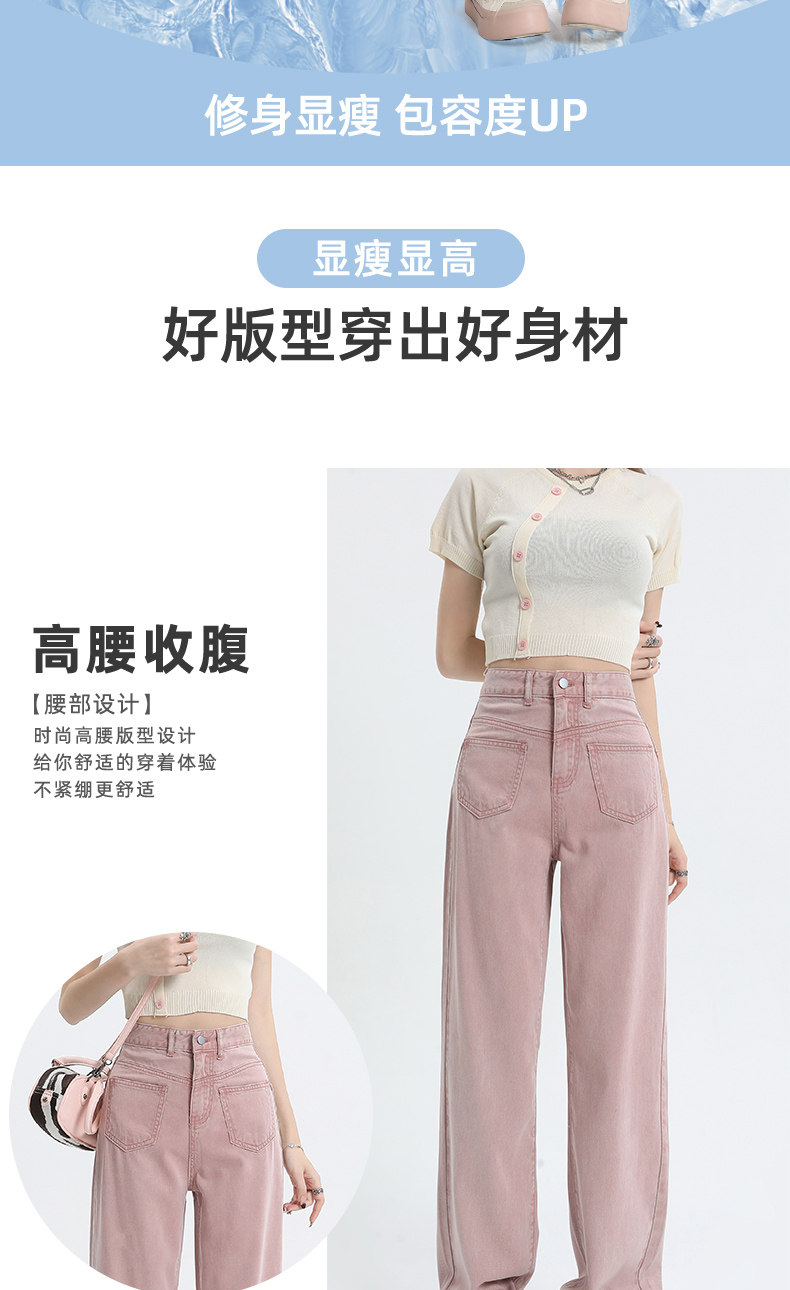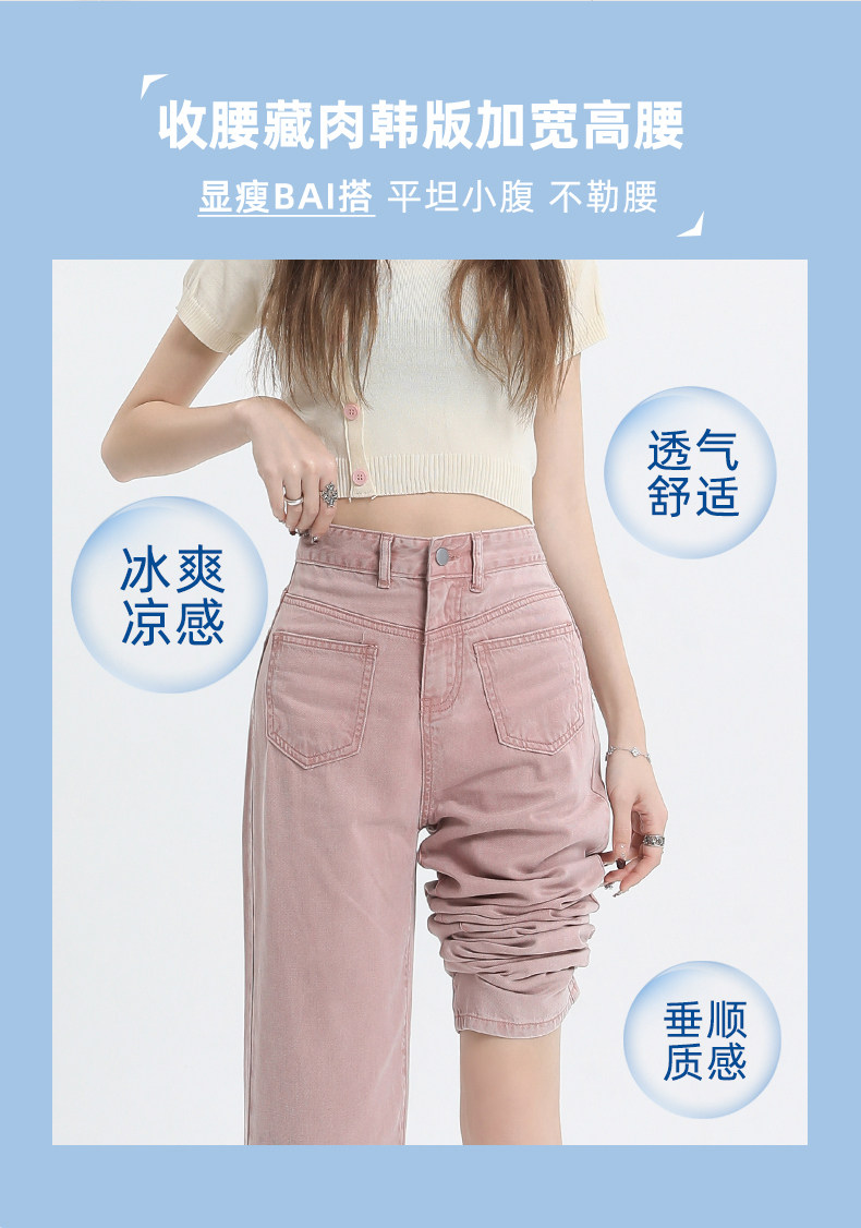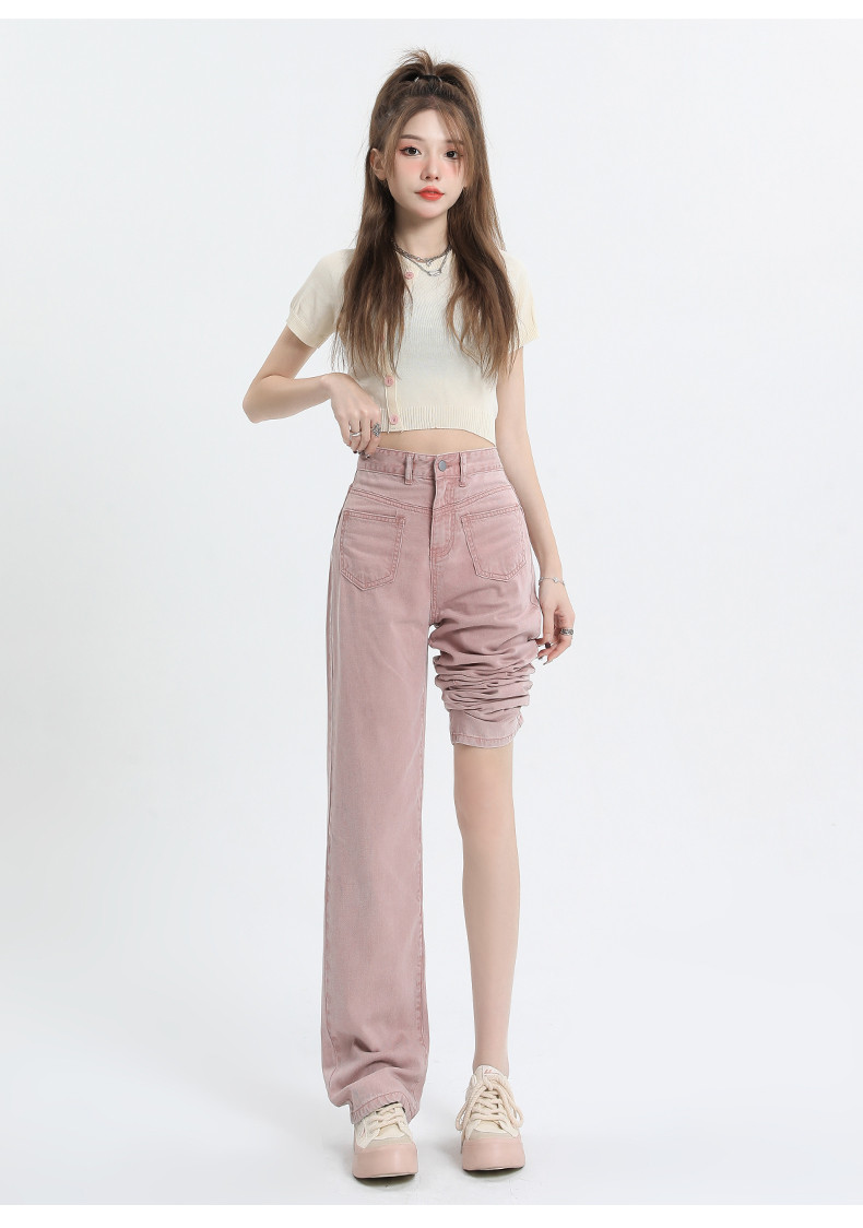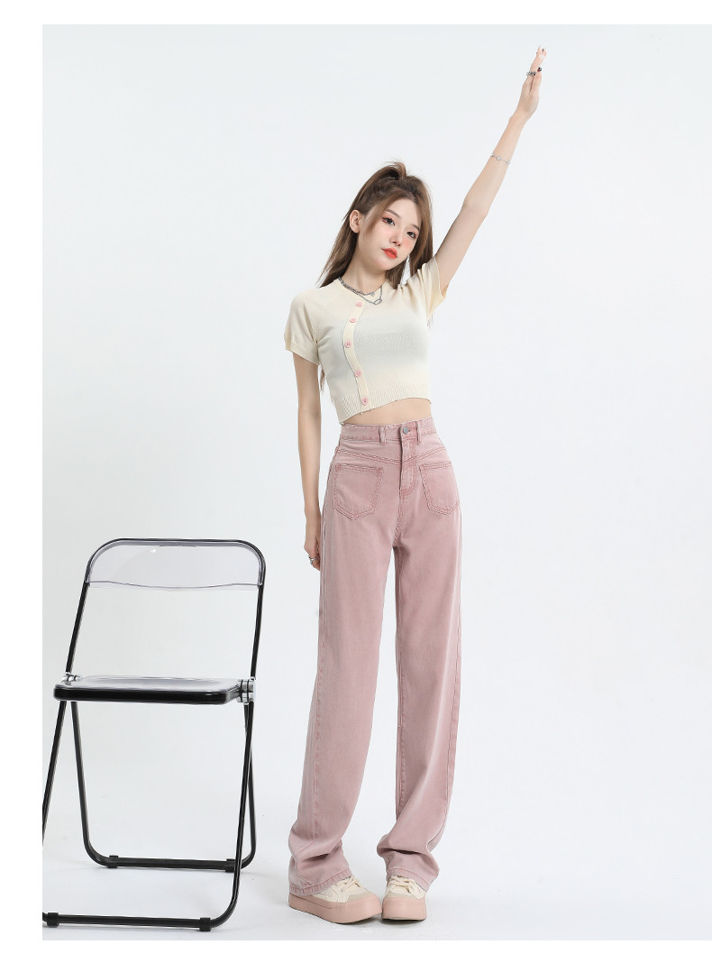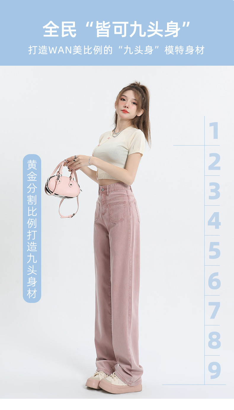 Розовые тонкие приталенные прямые свободные джинсы для отдыха, шелковые штаны, высокая талия, подходит для подростков