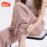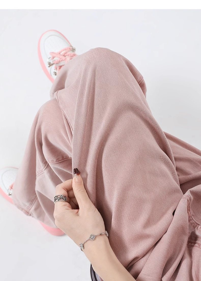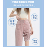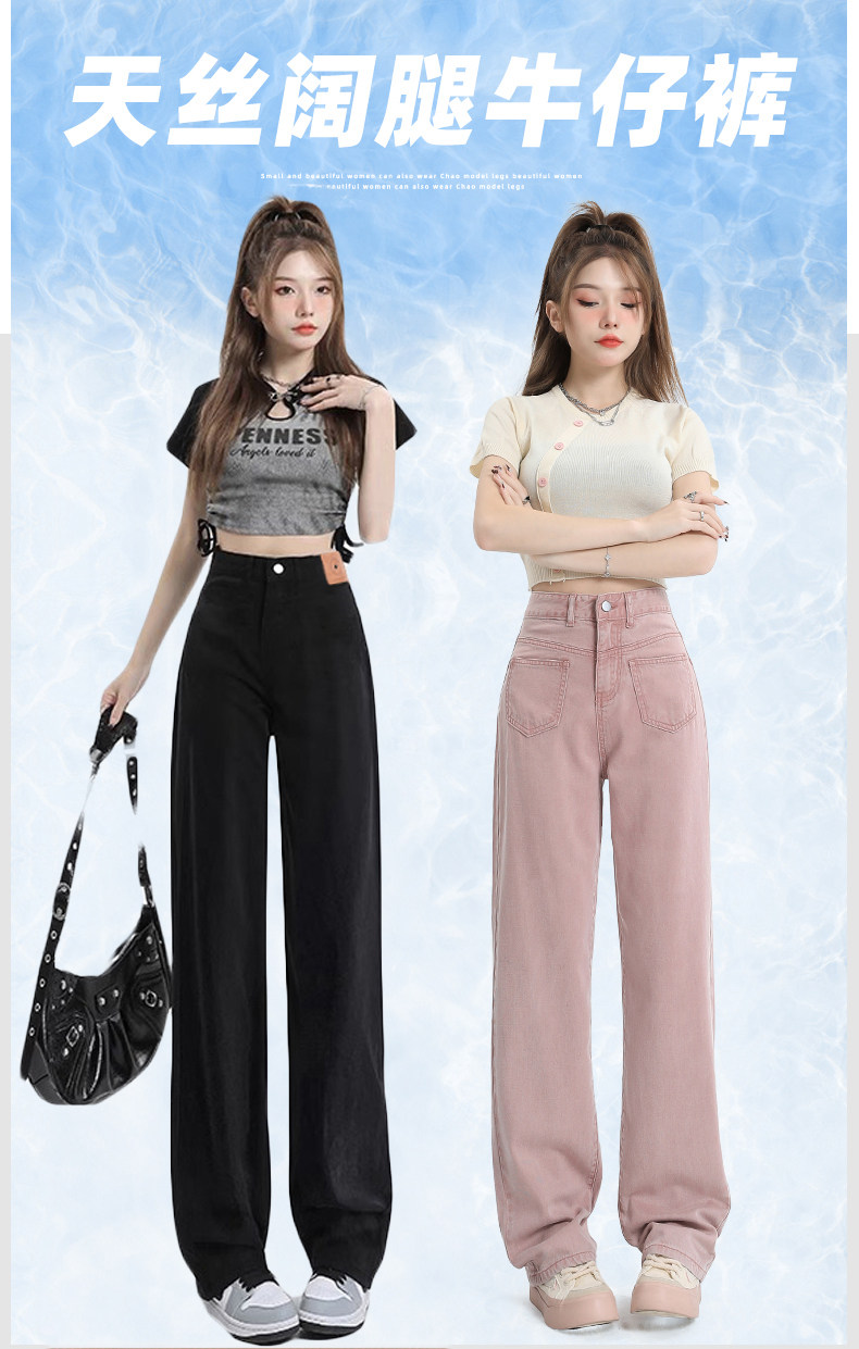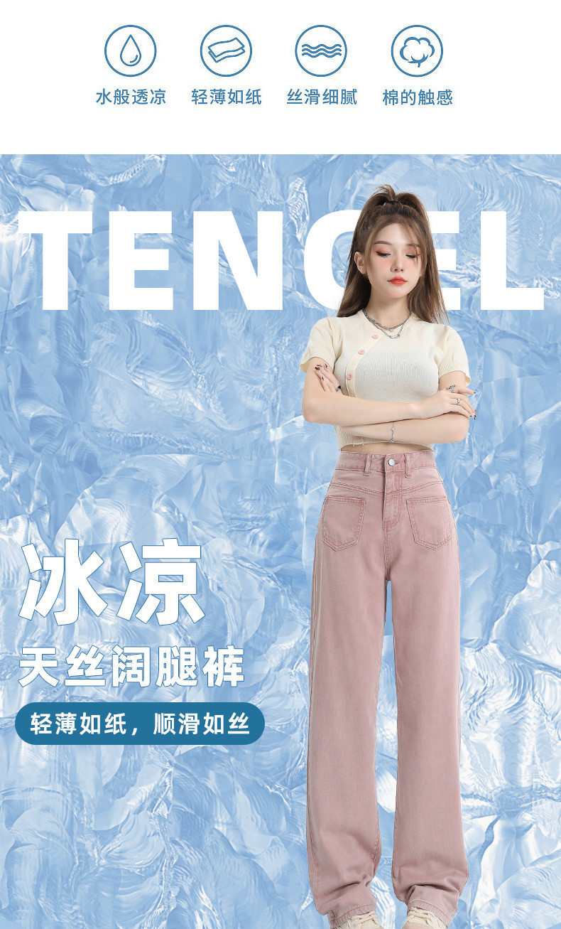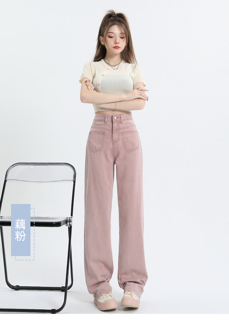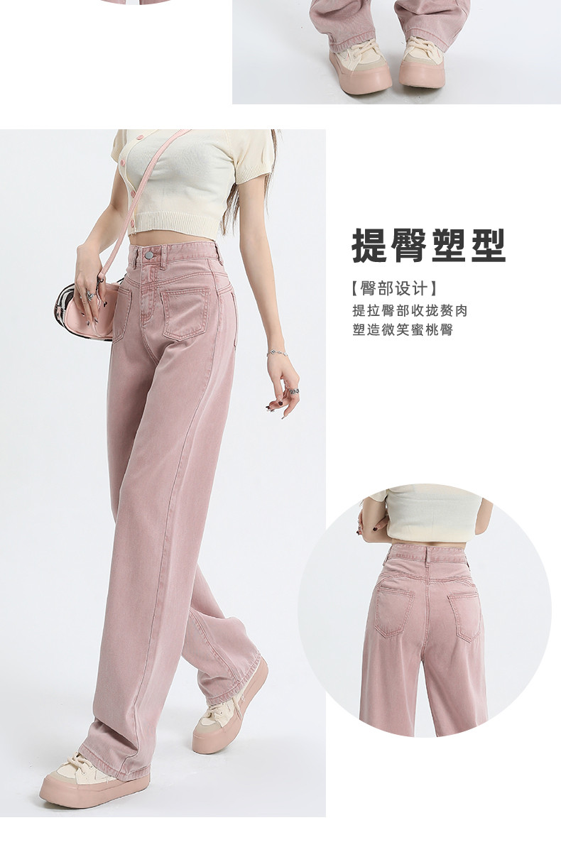 Розовые тонкие приталенные прямые свободные джинсы для отдыха, шелковые штаны, высокая талия, подходит для подростков