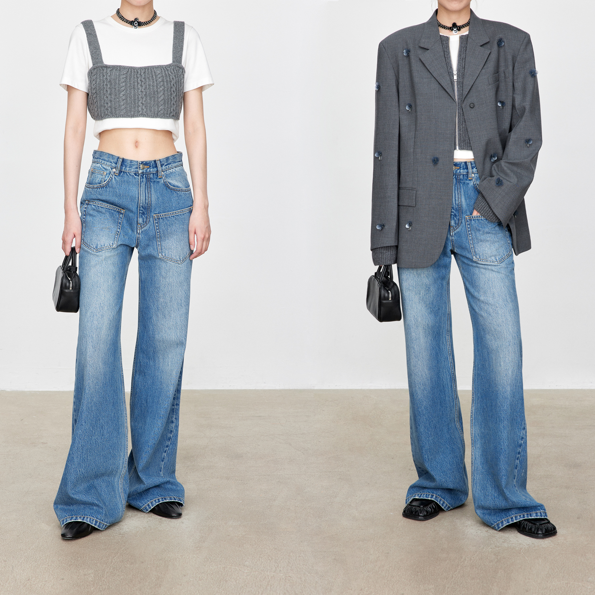 CHICJOC Страги с той же PS -класс Supermodel Leg VTG Итальянский импортный джинсовый многослойный карманные брюки