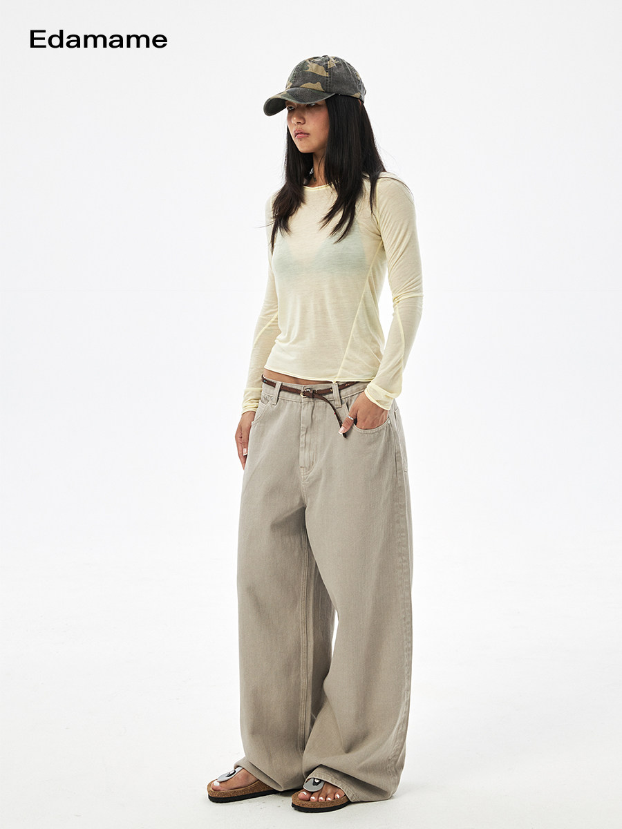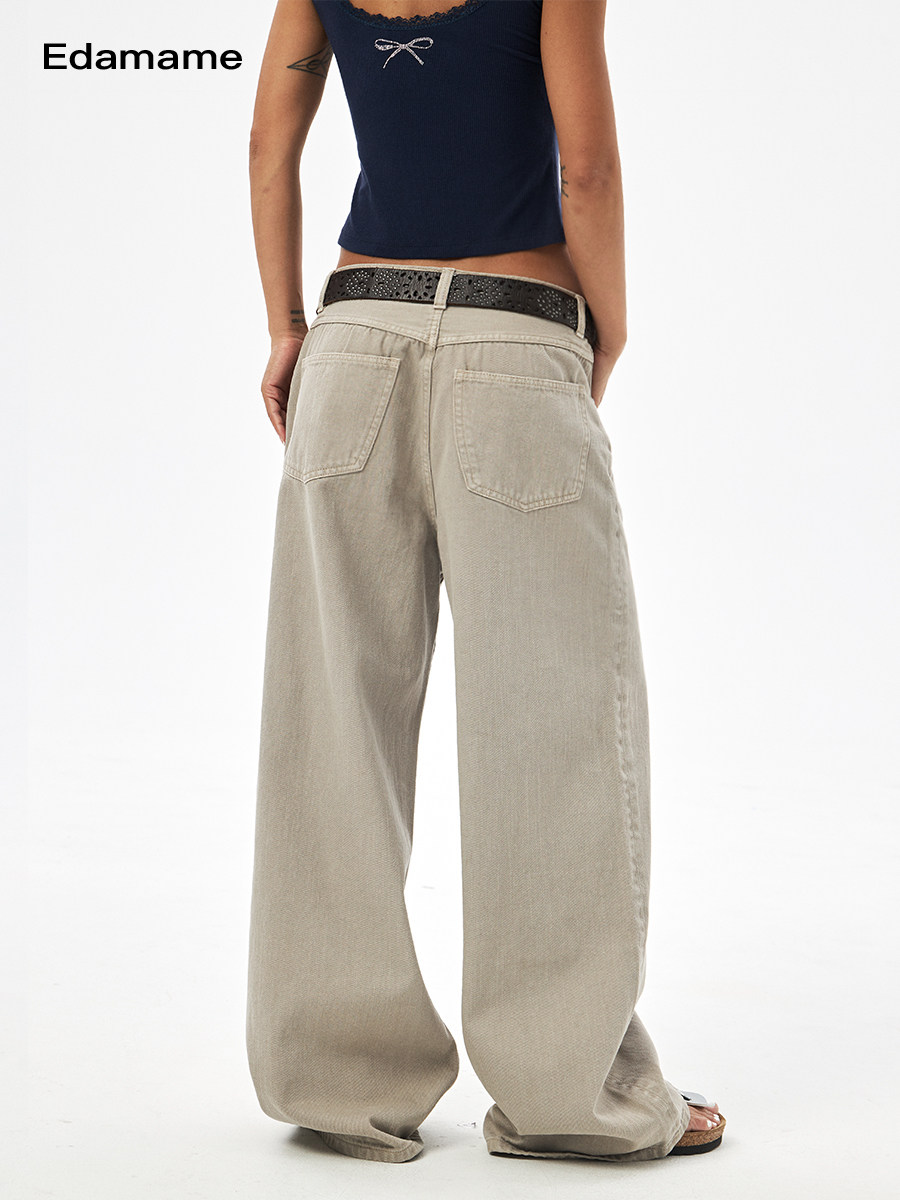 EMM Свободный четыре сезона универсальный стирание старых прямых джинсов и брюк в брюках в All-Match