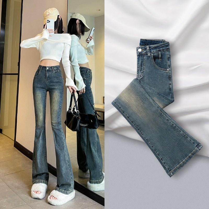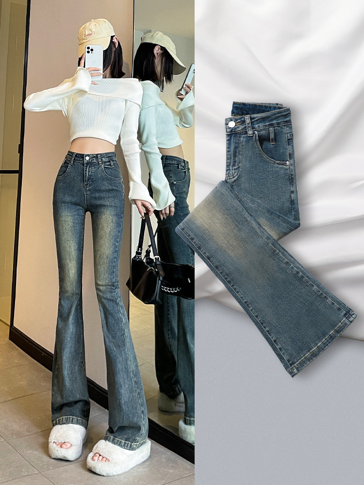 Тонкие джинсы, штаны, ретро штаны-клёш, высокая талия, коллекция 2023, по фигуре, свободный крой