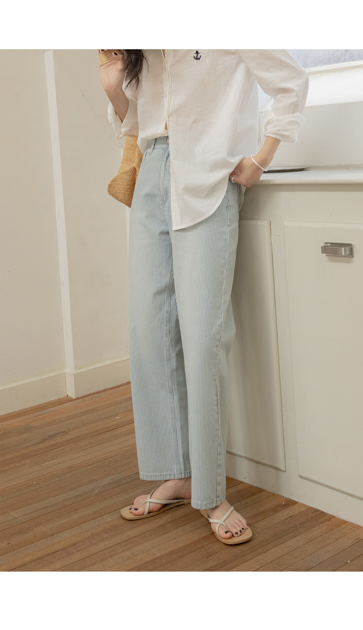 Освежающий прямую ногу девять полосатых джинсов, еще одинОчень легко изменить форму ногиБожеские штаны,