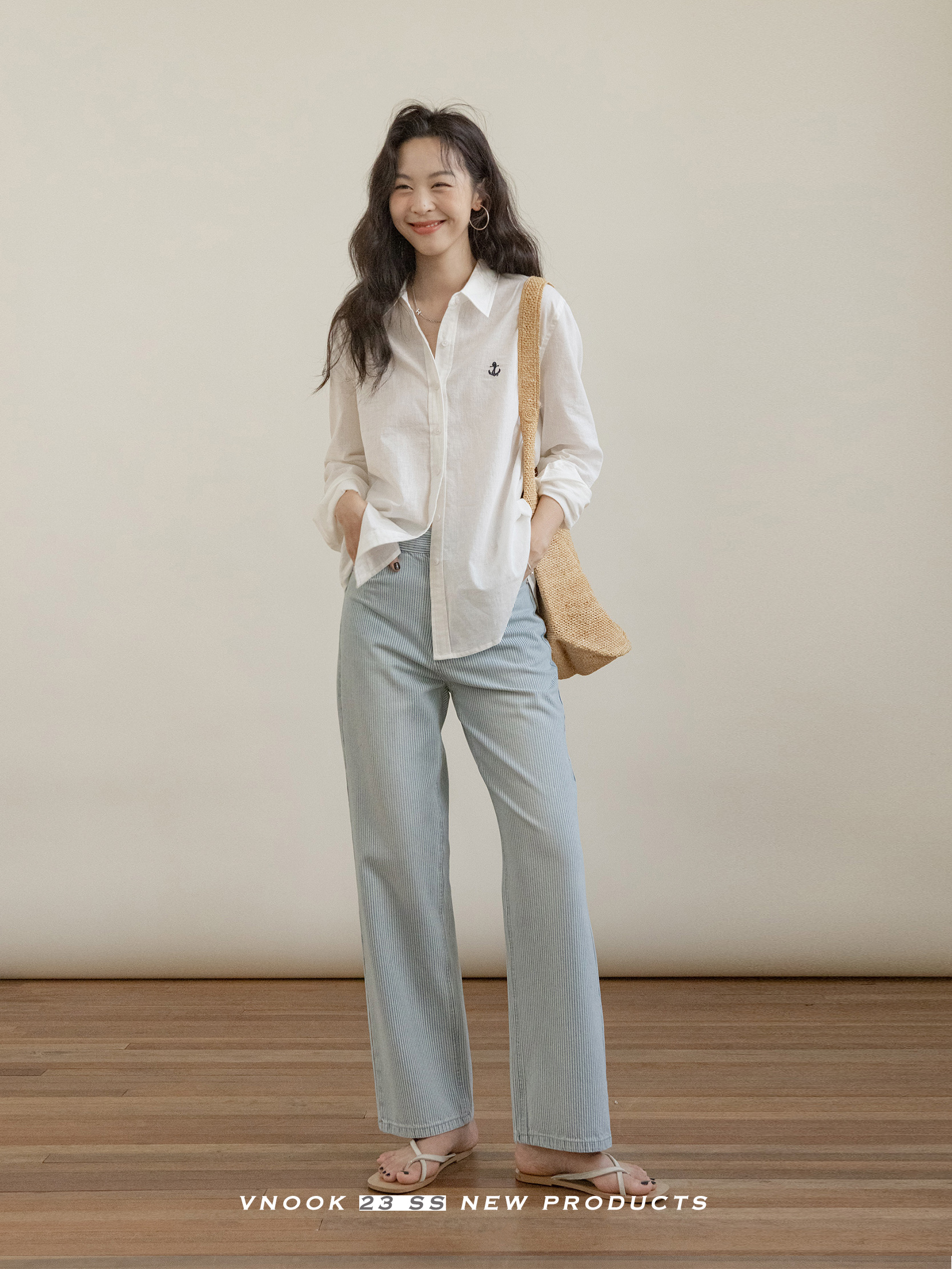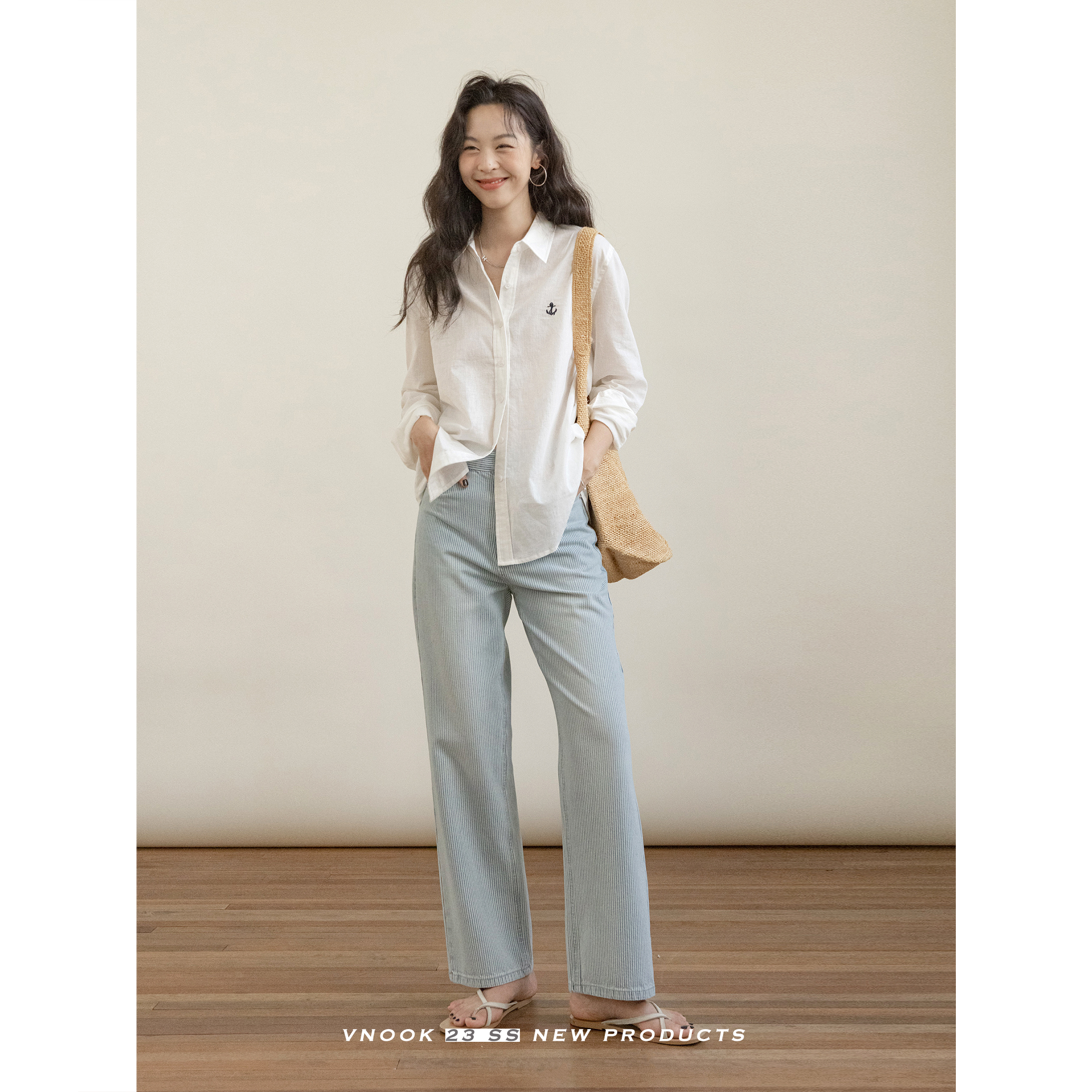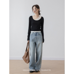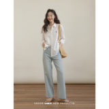 Летние тонкие джинсы, штаны для отдыха, коллекция 2023, свободный прямой крой, высокая талия