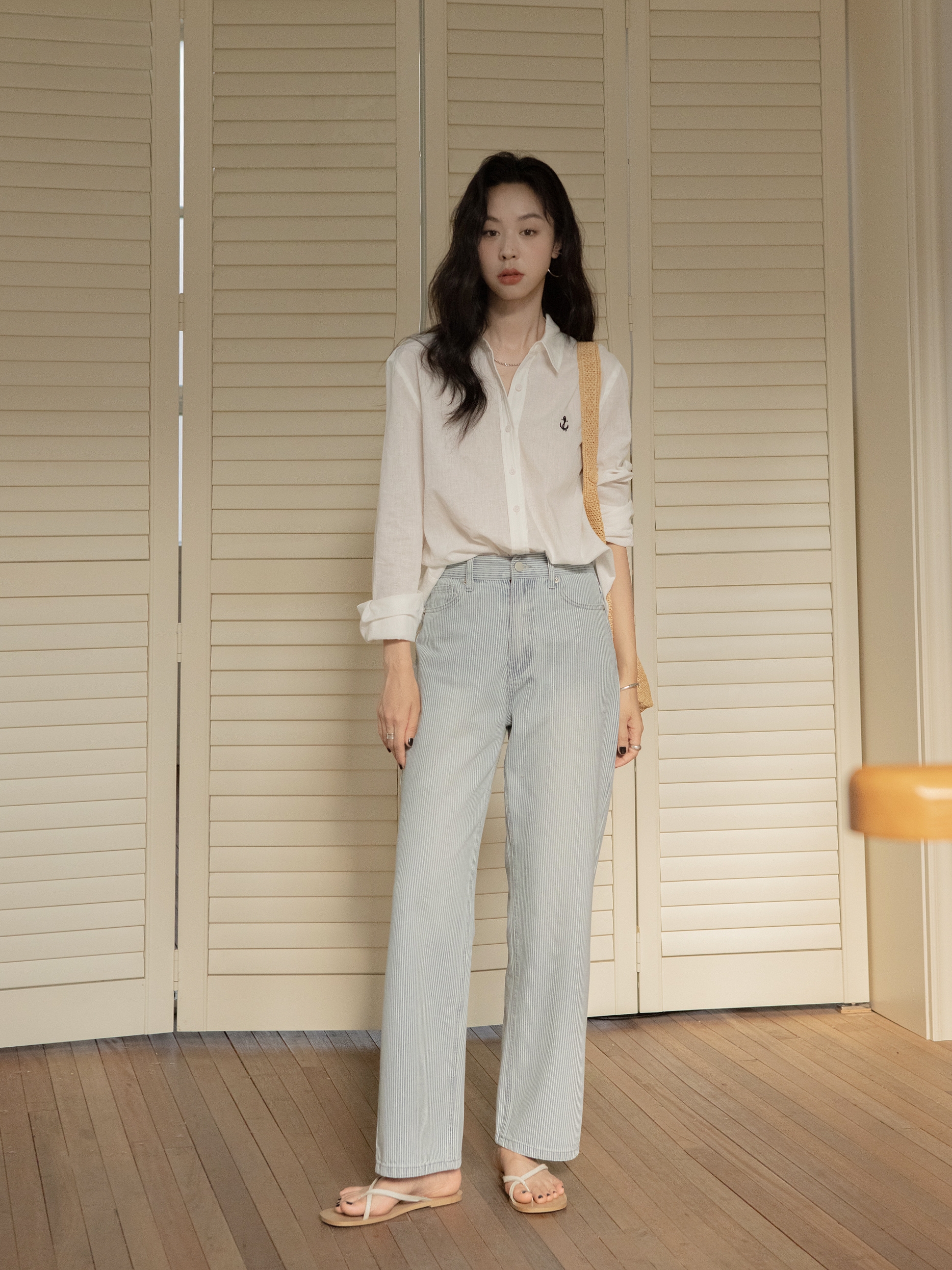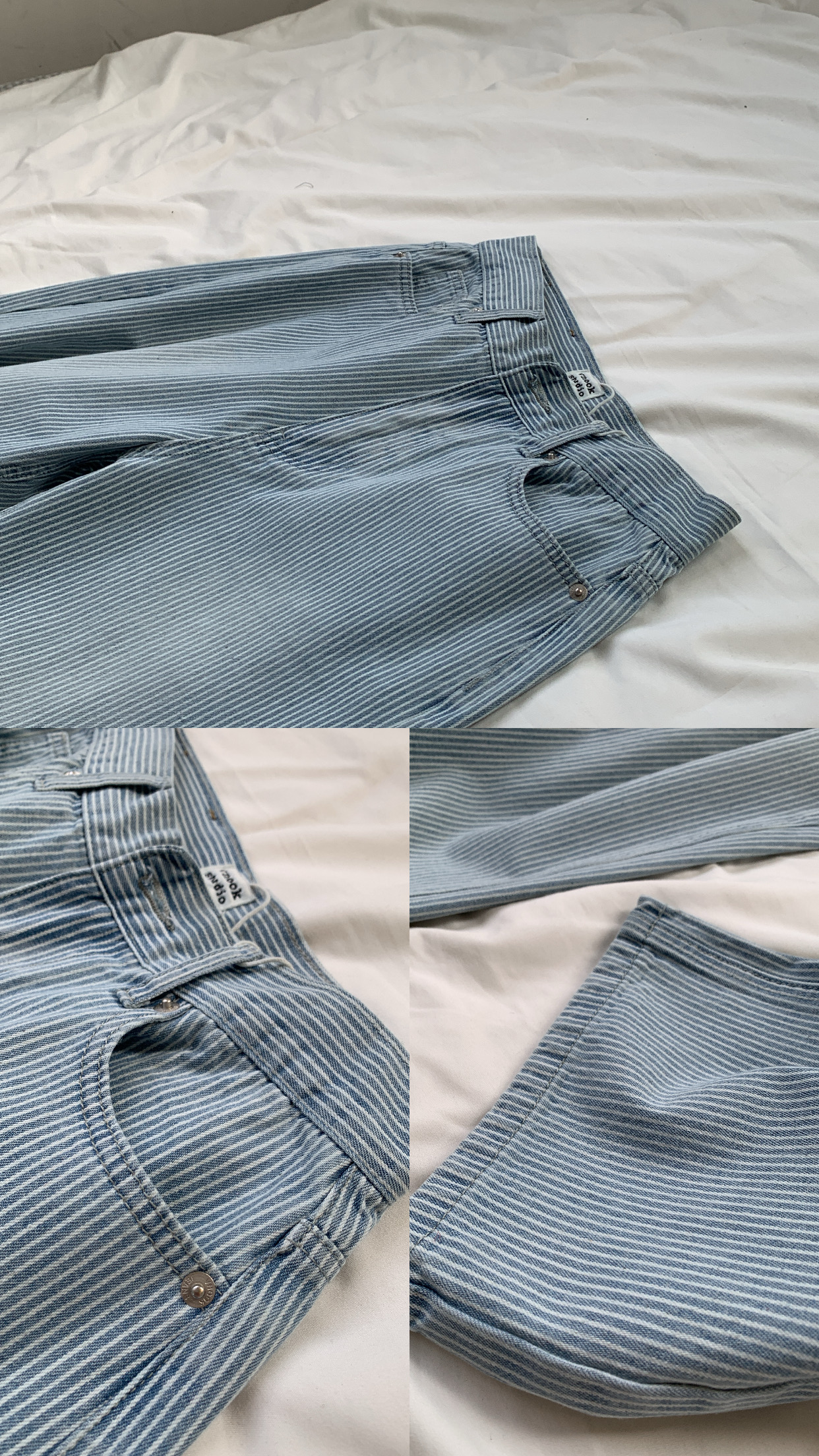 использоватьХлопокизЦветная ткацкая полосатая джинсовая ткань,Слишком много процессов мытья воды,Ослабленная полоса,Все брюки в целом более,Низкие и подробные детали,