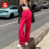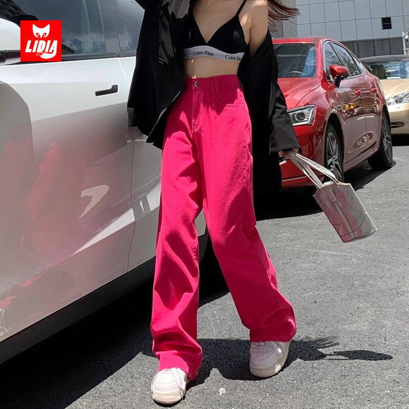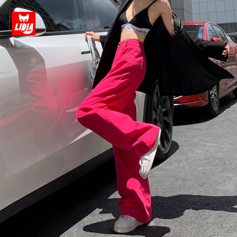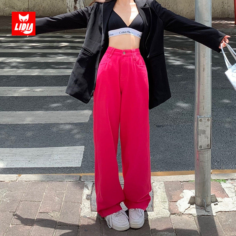 Красные осенние джинсы, штаны, приталенные леггинсы, высокая талия, свободный прямой крой