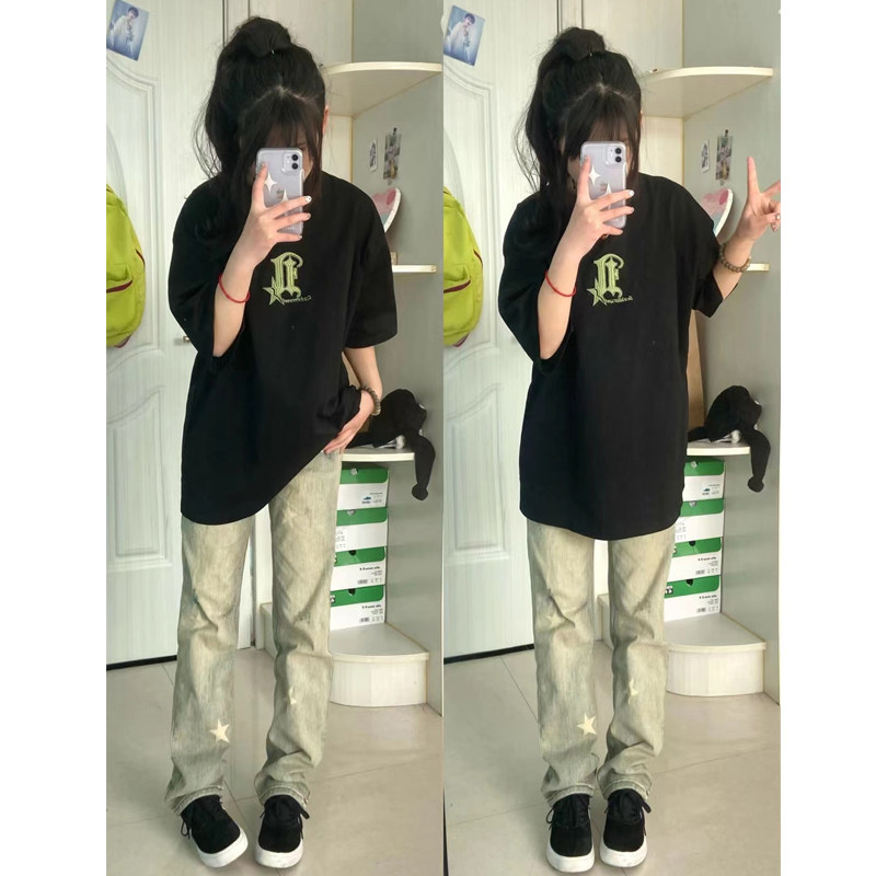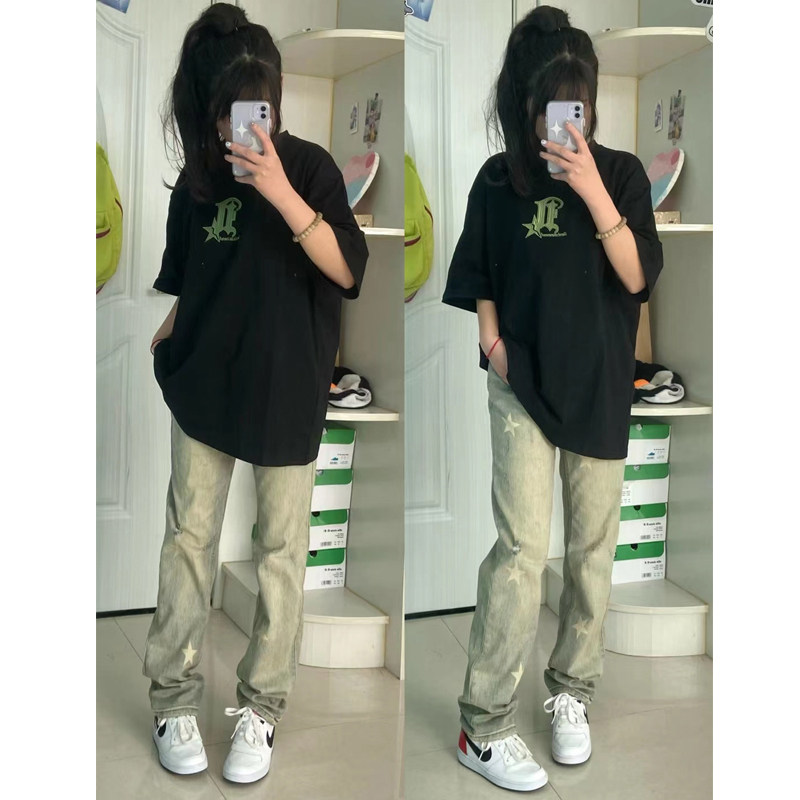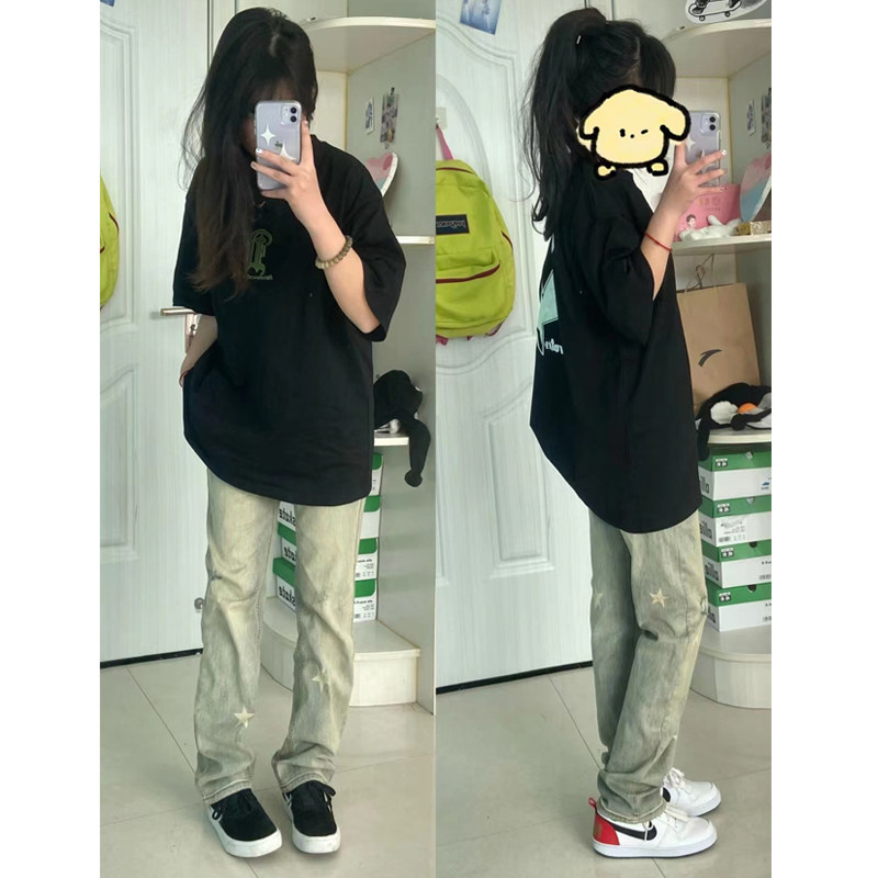Осенние ретро джинсы, штаны, в американском стиле, свободный прямой крой