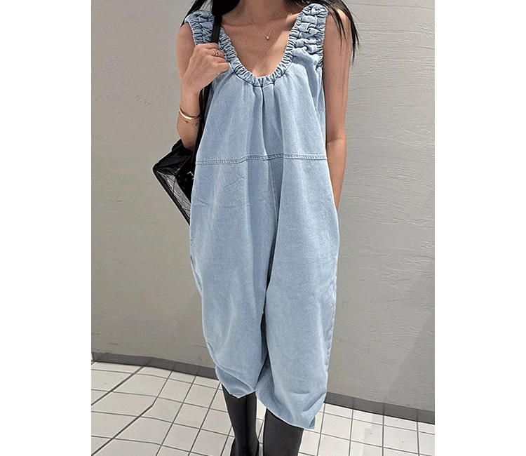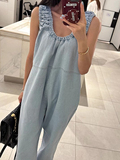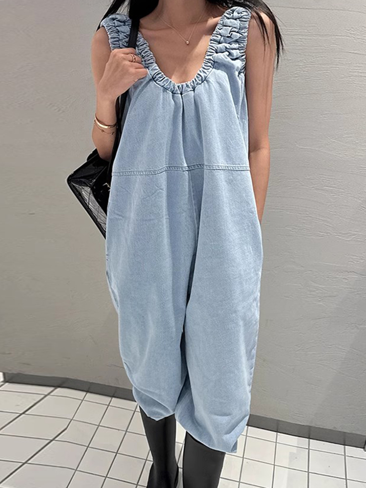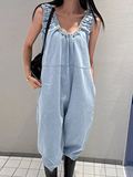 Летний ретро комбинезон для отдыха, штаны, в корейском стиле, V-образный вырез, оверсайз, свободный крой