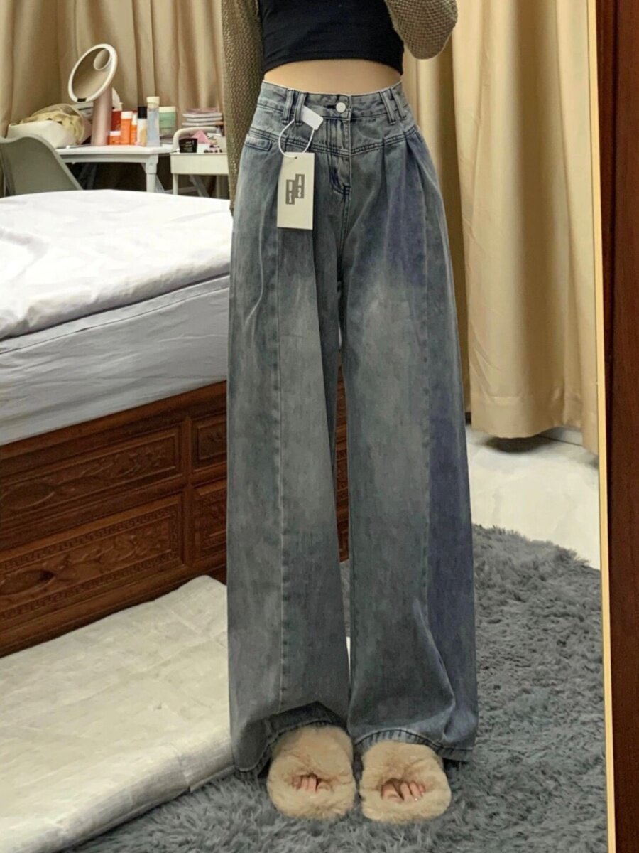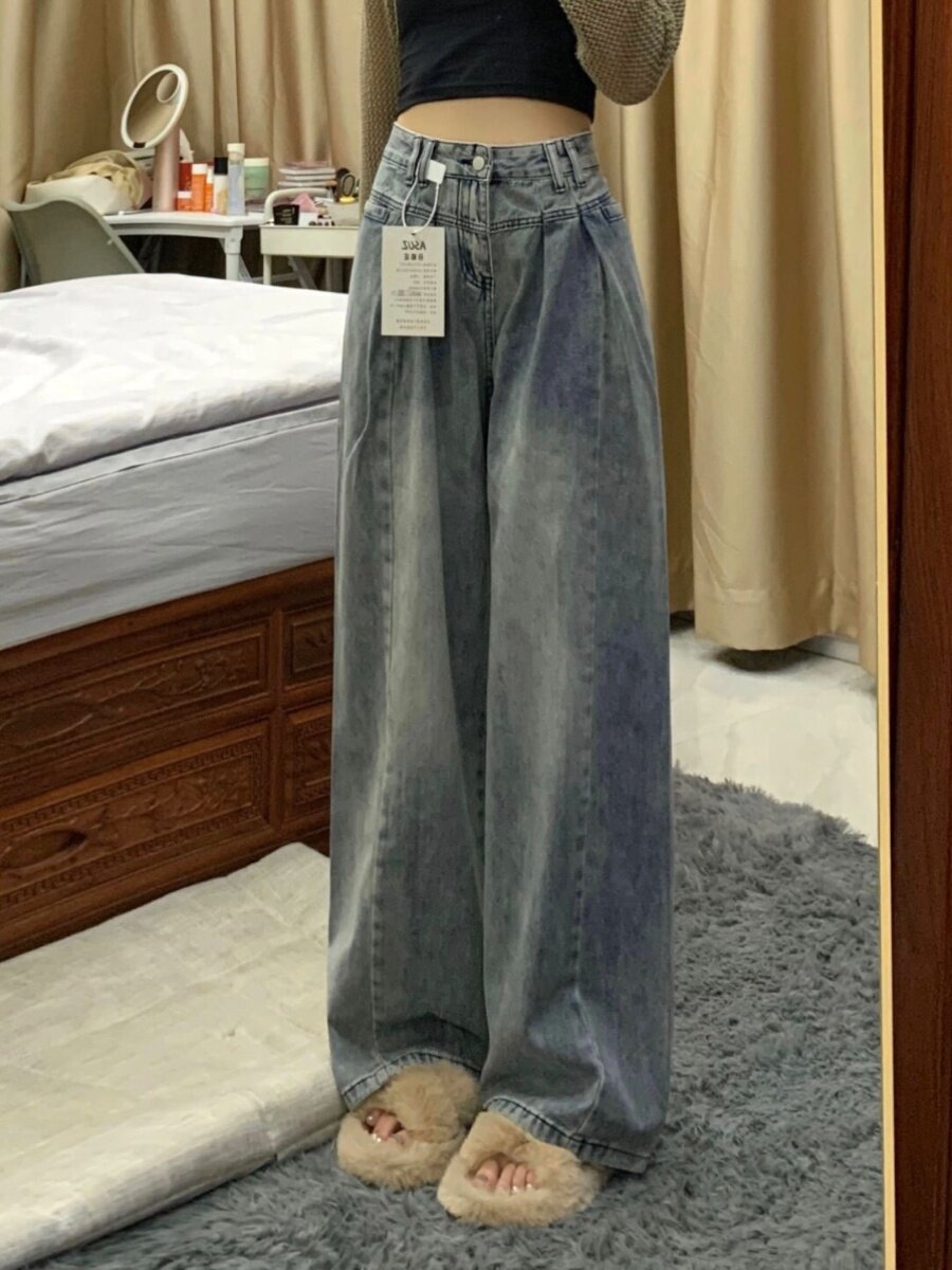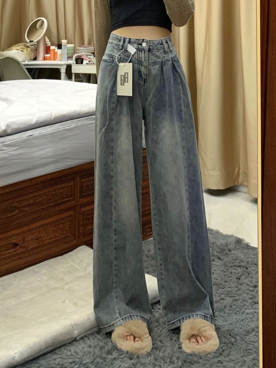 Ретро осенние джинсы, демисезонные штаны, большой размер, высокая талия, подходят для подростков, свободный прямой крой
