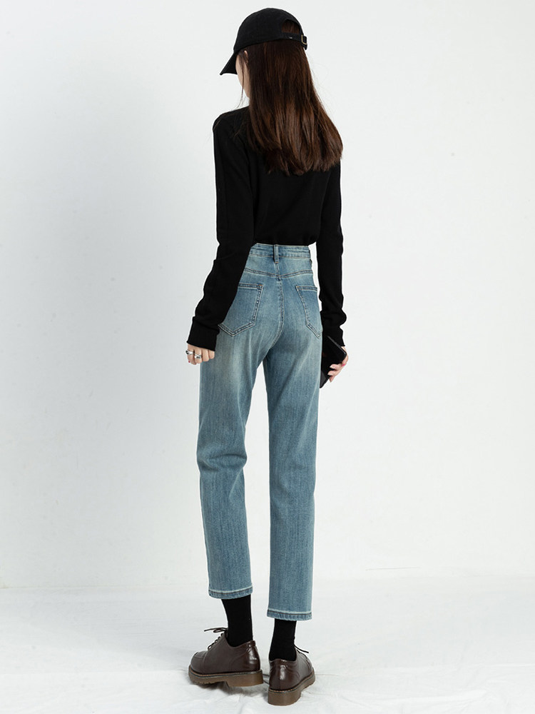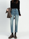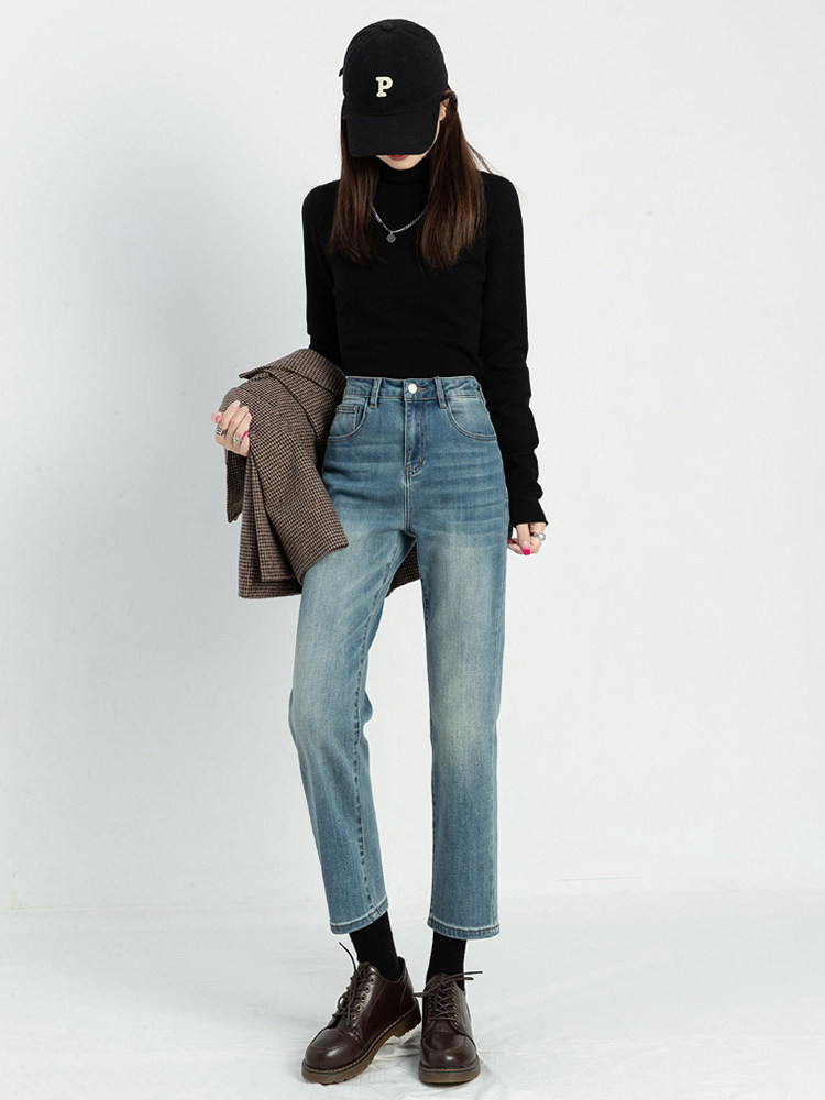 Осенние приталенные джинсы, ретро штаны, 2024 года, высокая талия, свободный прямой крой, подходит для подростков