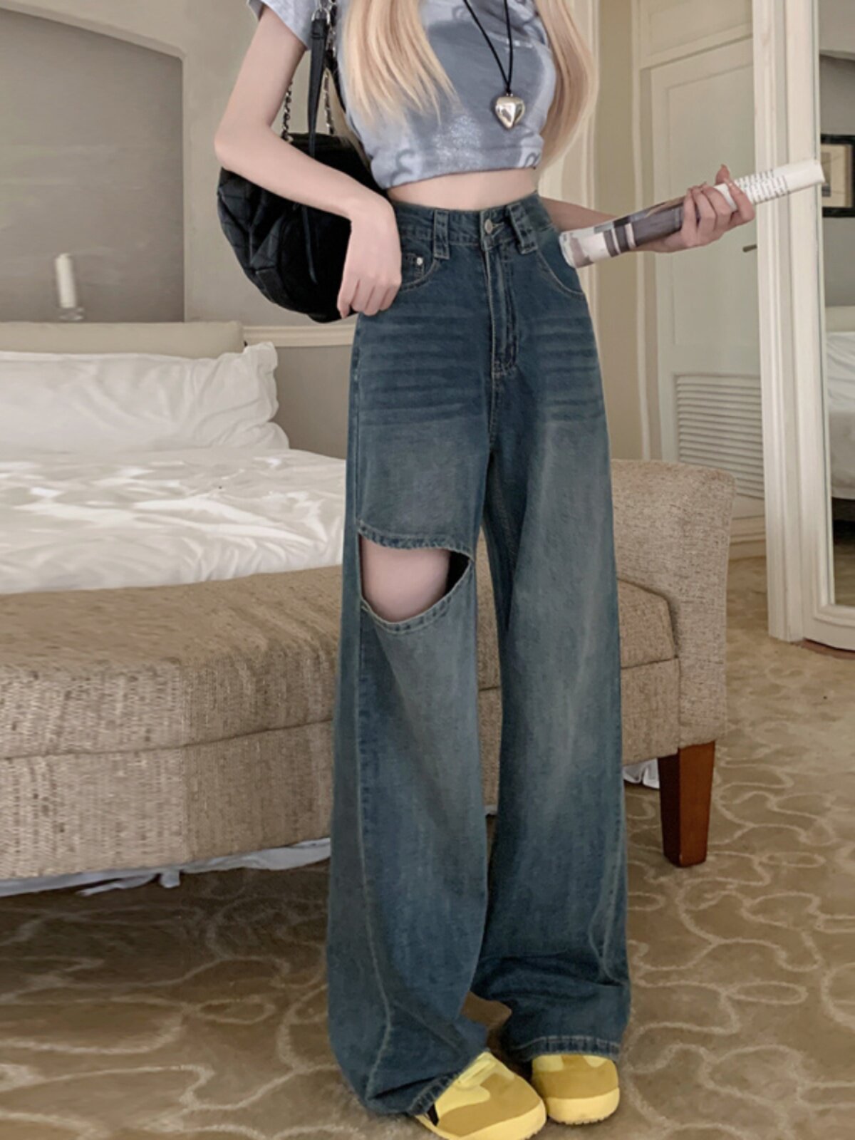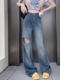 Тонкие летние джинсы, штаны, 2024 года, высокая талия, свободный прямой крой, подходит для подростков
