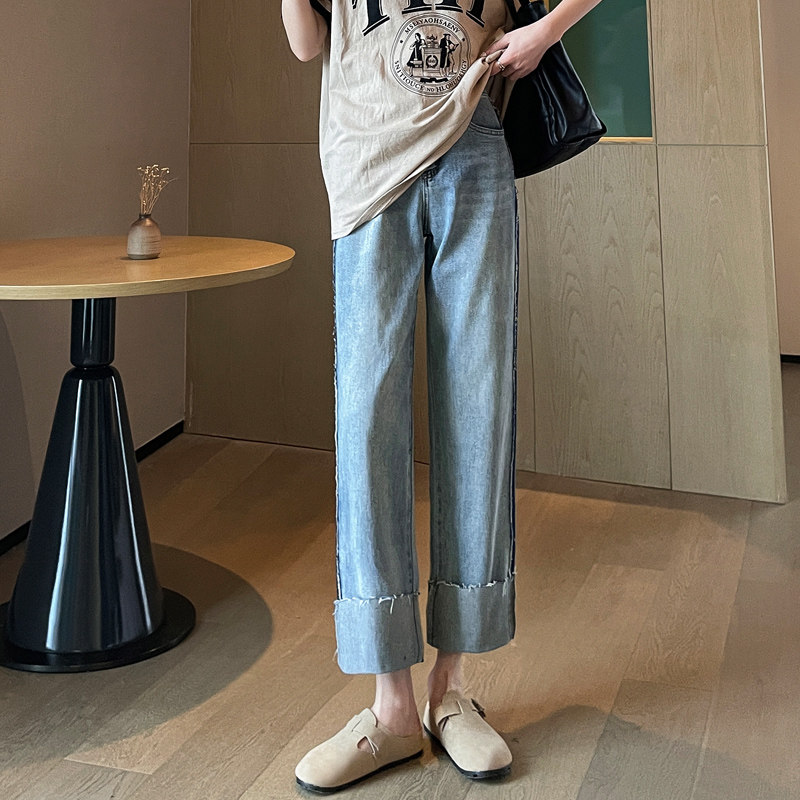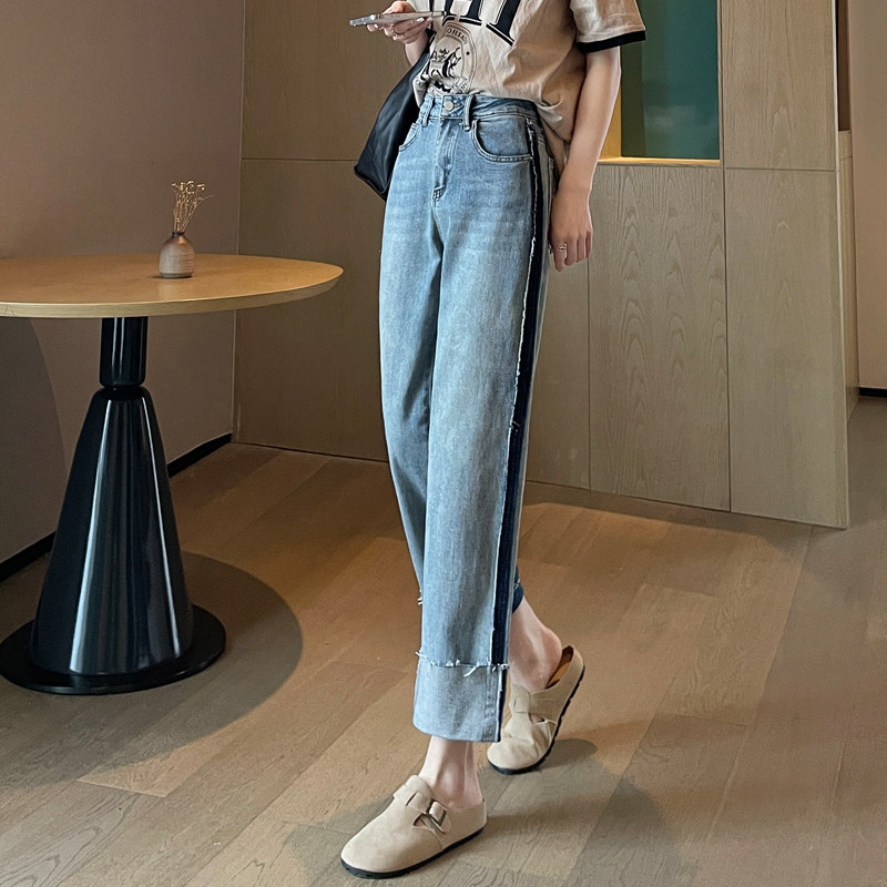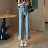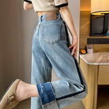 Тонкие весенние прямые свободные джинсы, штаны, 2024 года, высокая талия, свободный крой