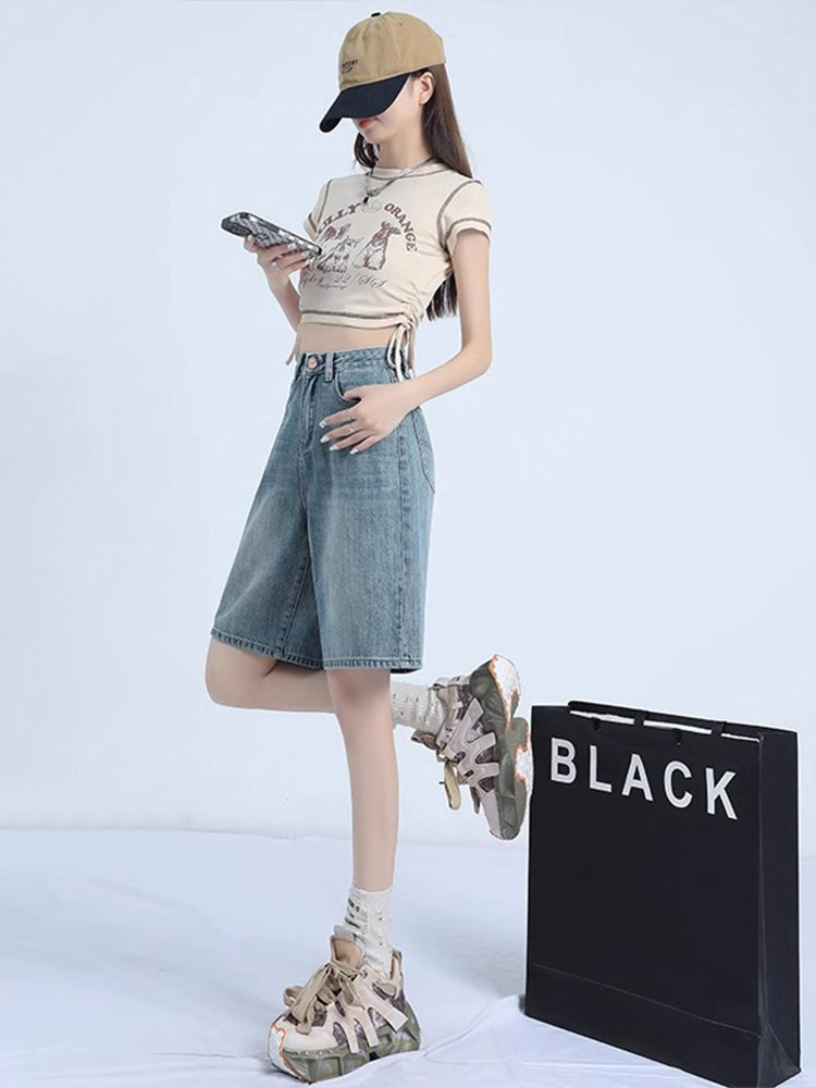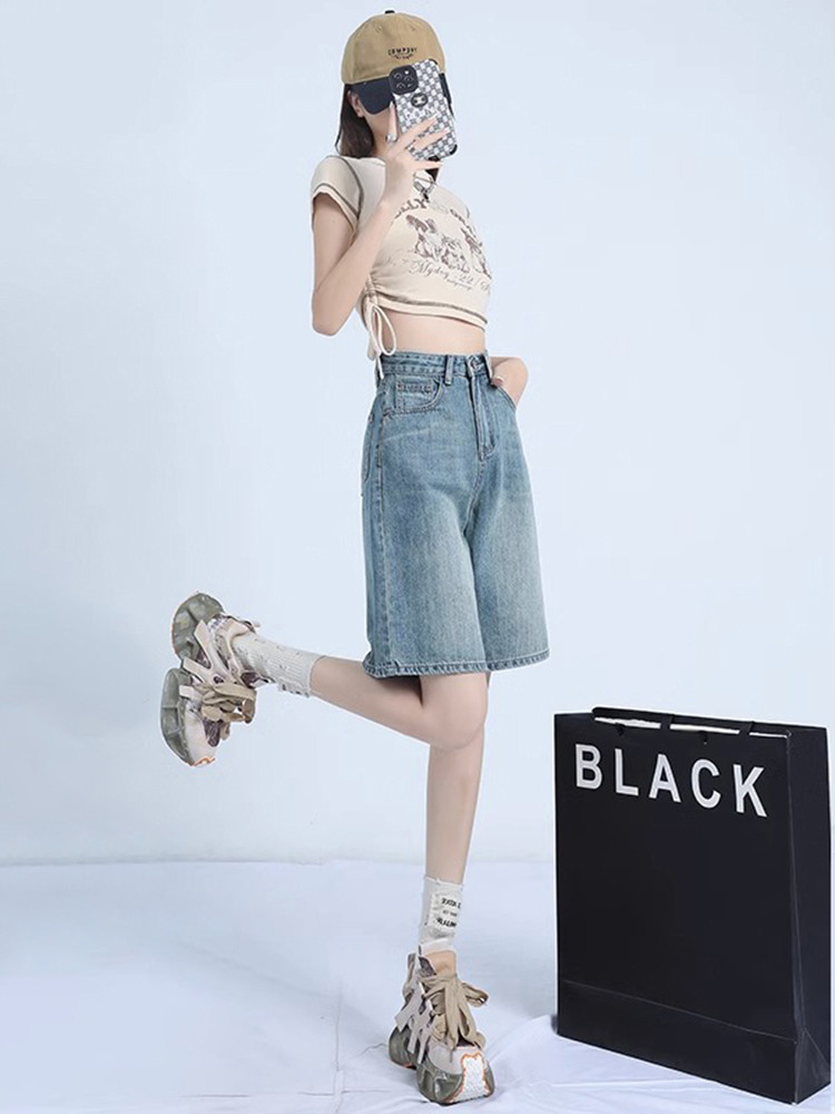 Летние тонкие шорты, джинсовые штаны, по фигуре, коллекция 2023, оверсайз, свободный крой, высокая талия