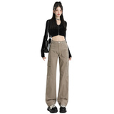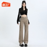 Штаны, высокая талия, свободный прямой крой, по фигуре