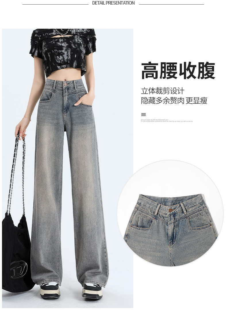 Тонкие джинсы, штаны, 2025 года, высокая талия, подходит для подростков, свободный прямой крой