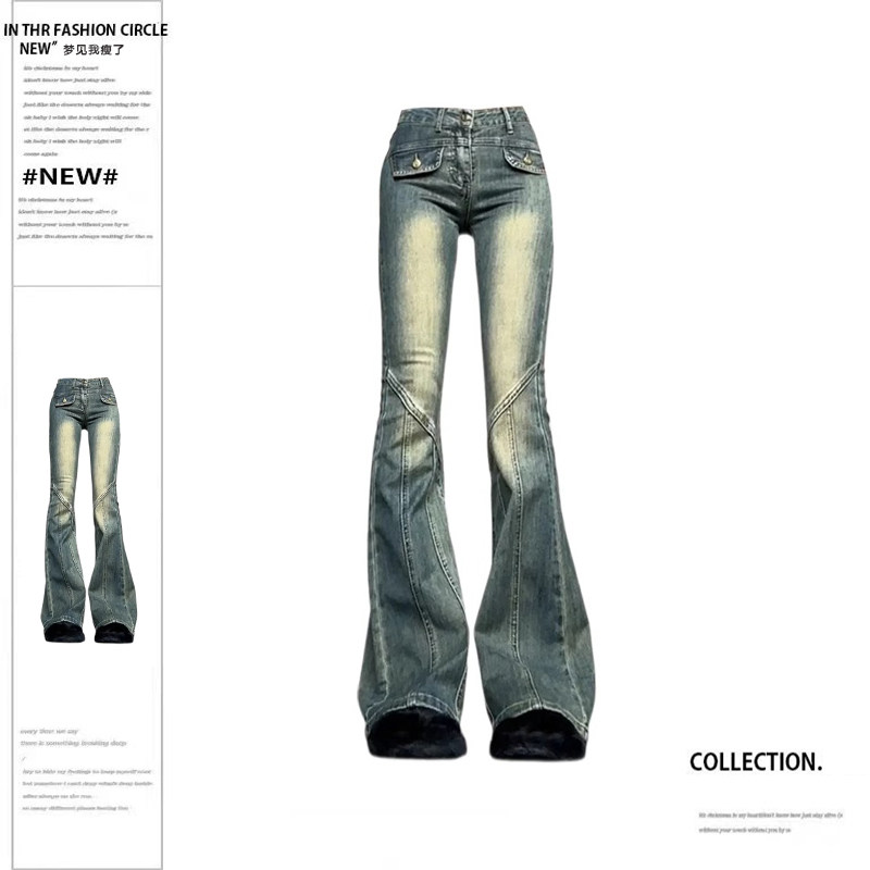 Ретро сексуальные приталенные джинсы, штаны, штаны-клёш, повседневные брюки, большой размер, высокая талия
