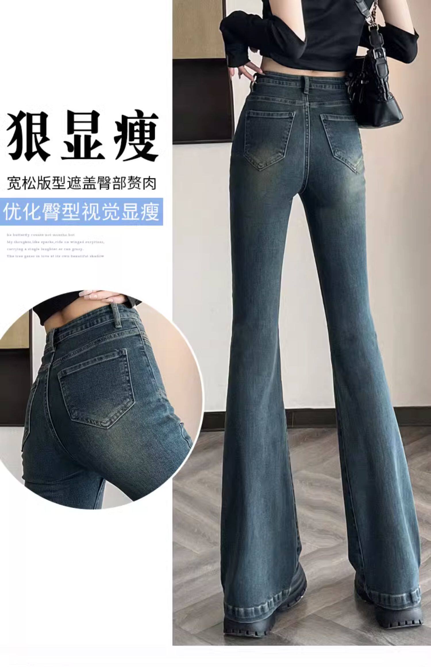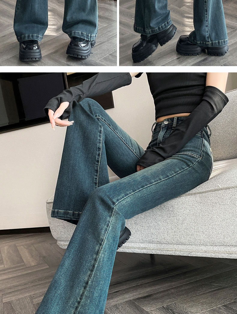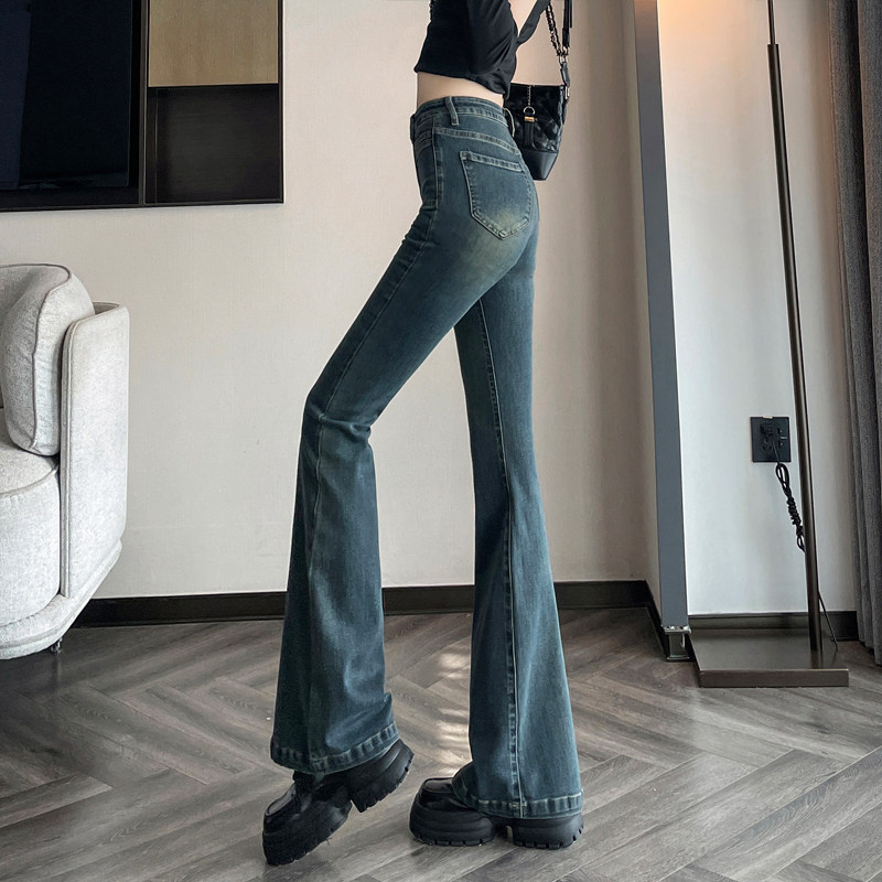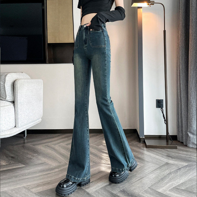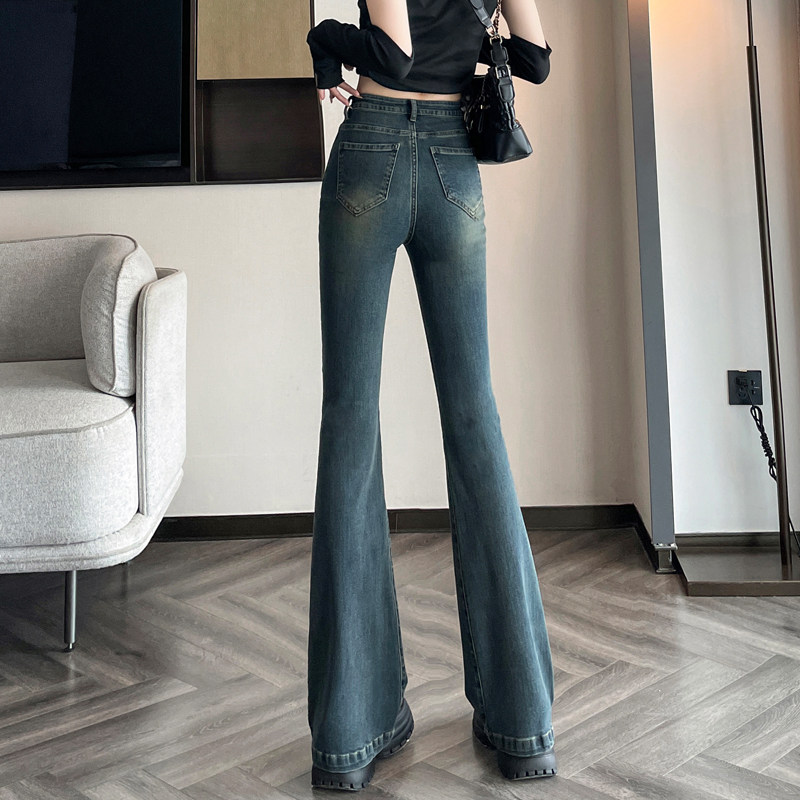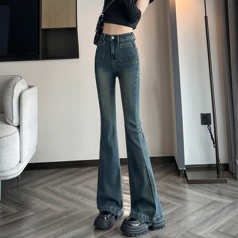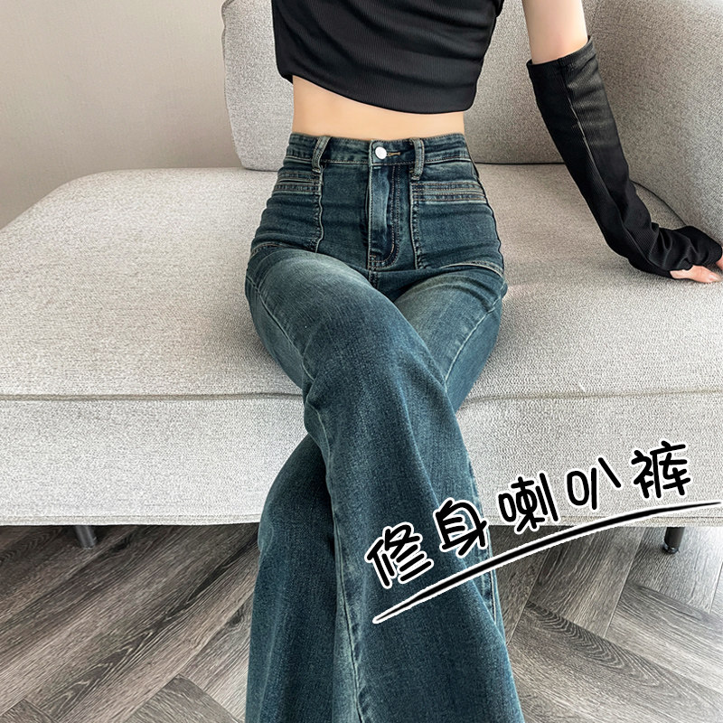 Ретро тонкие осенние джинсы, штаны, приталенные штаны-клёш, коллекция 2023, высокая талия