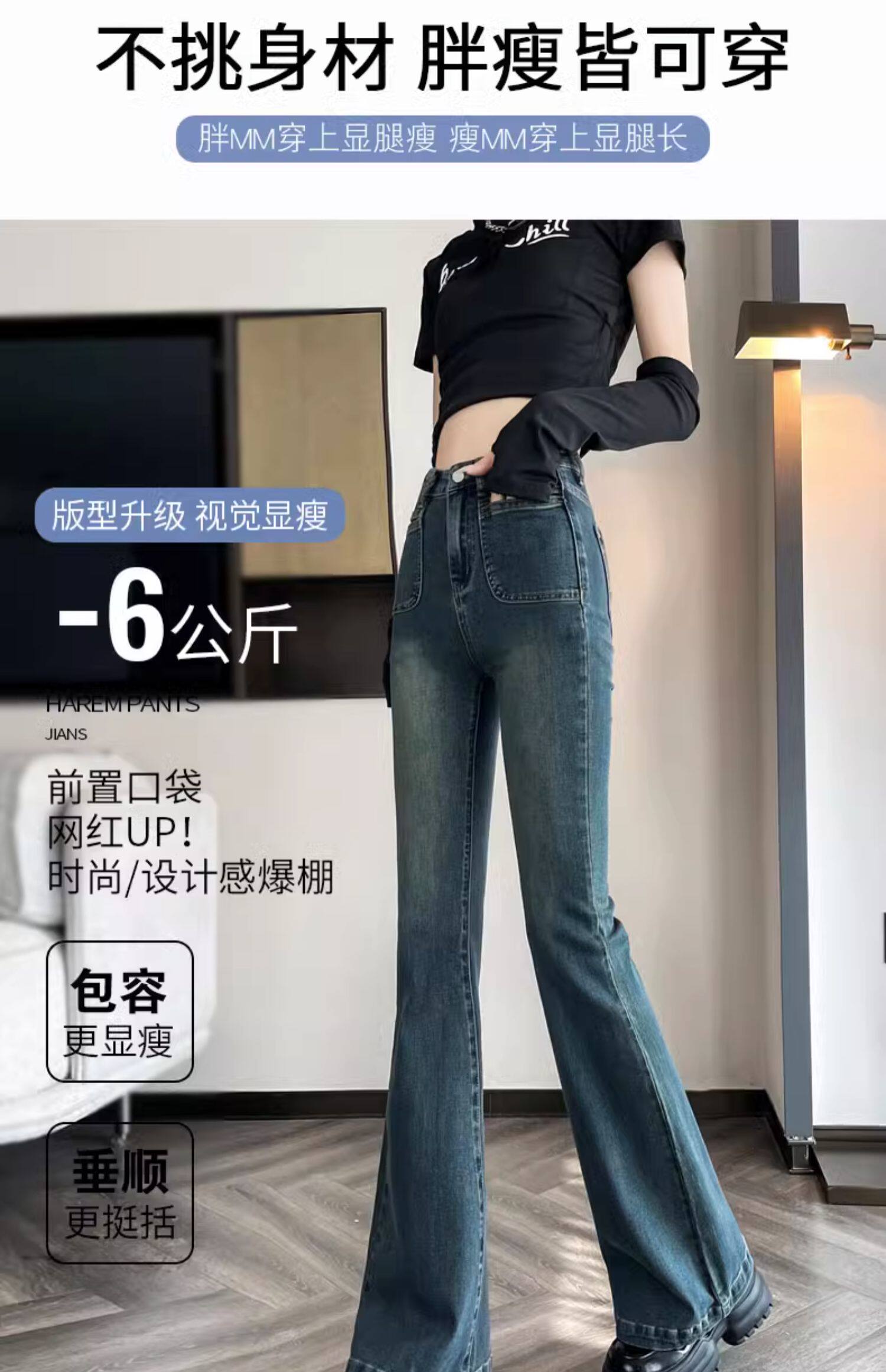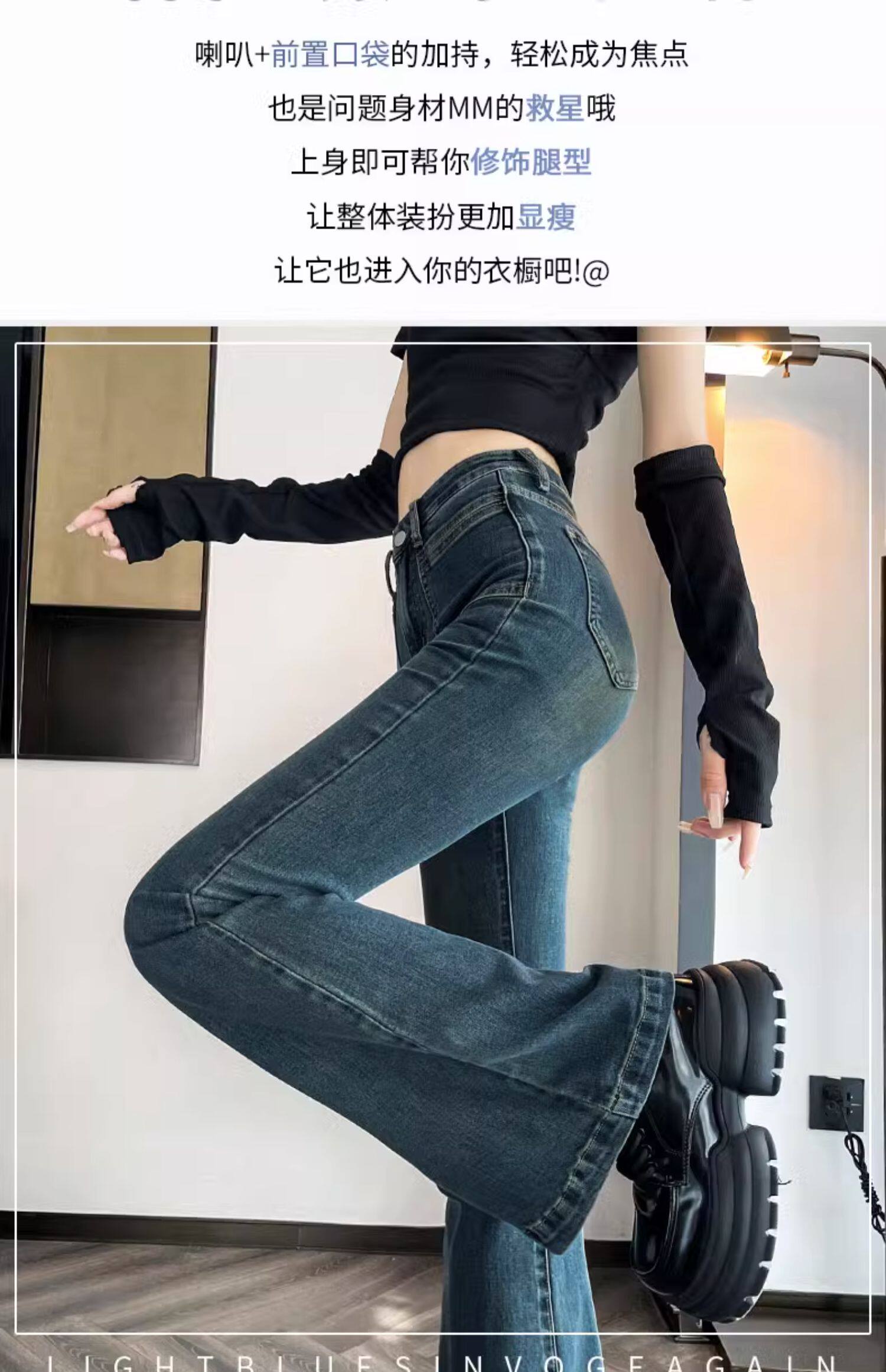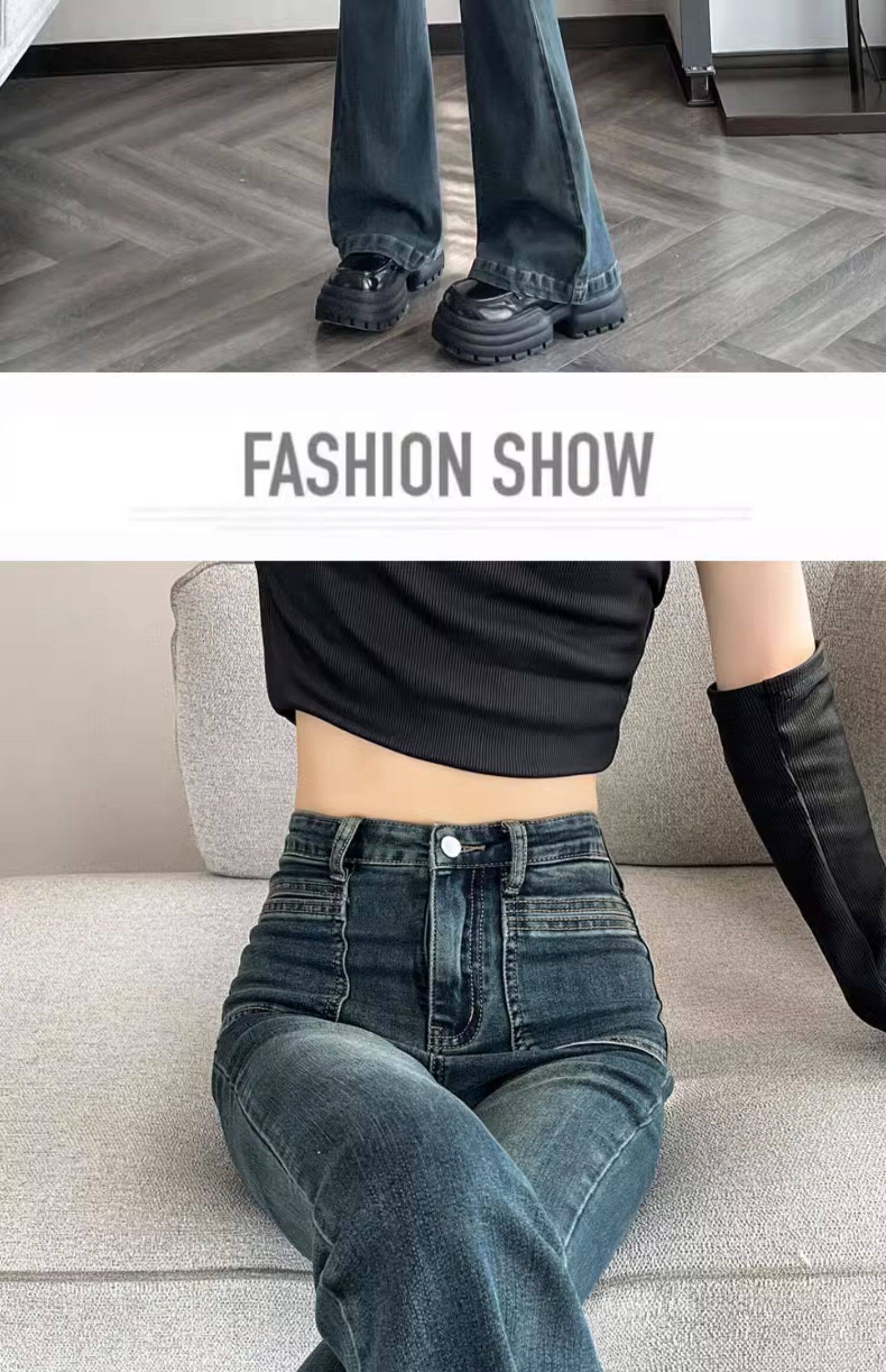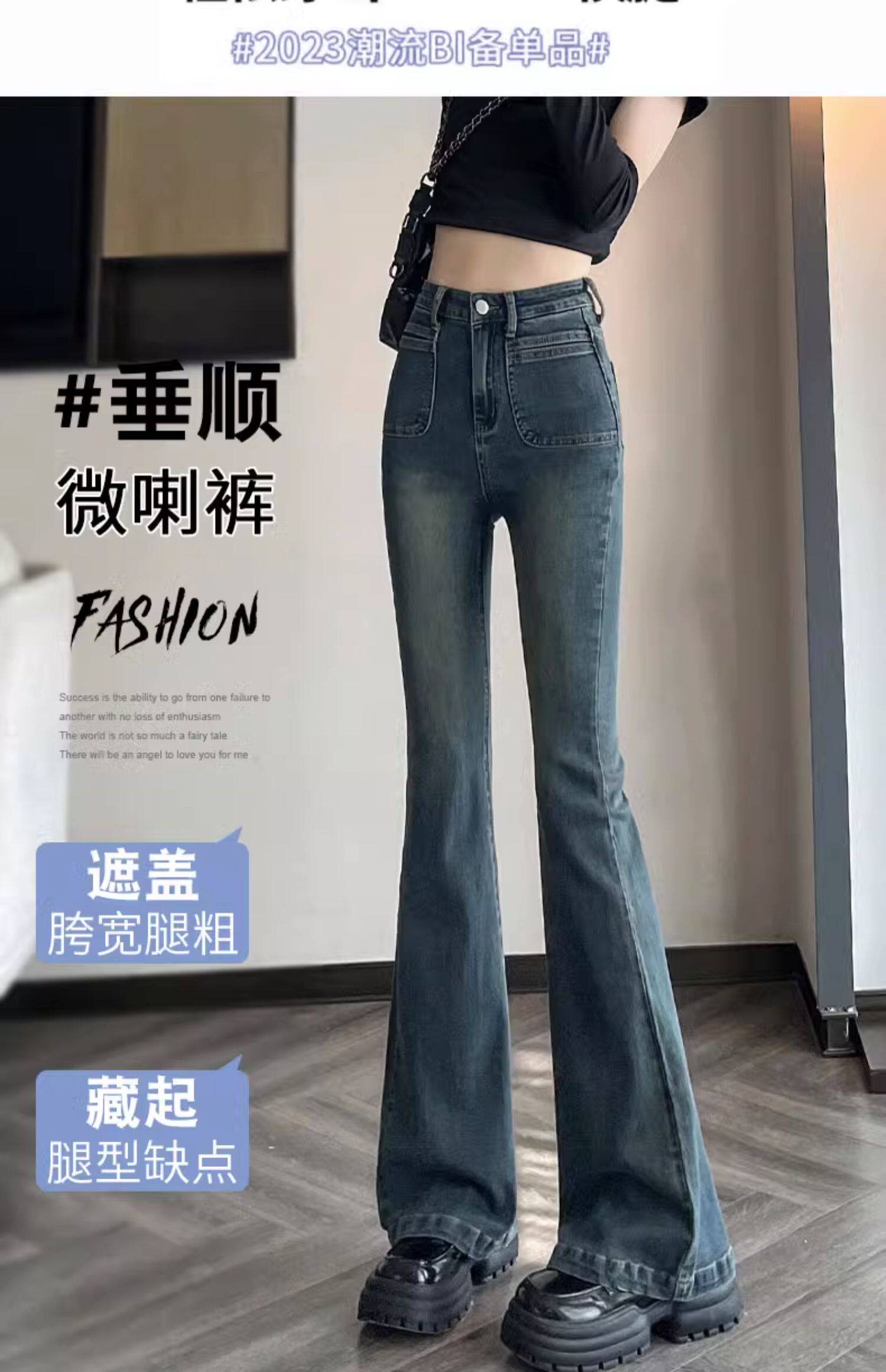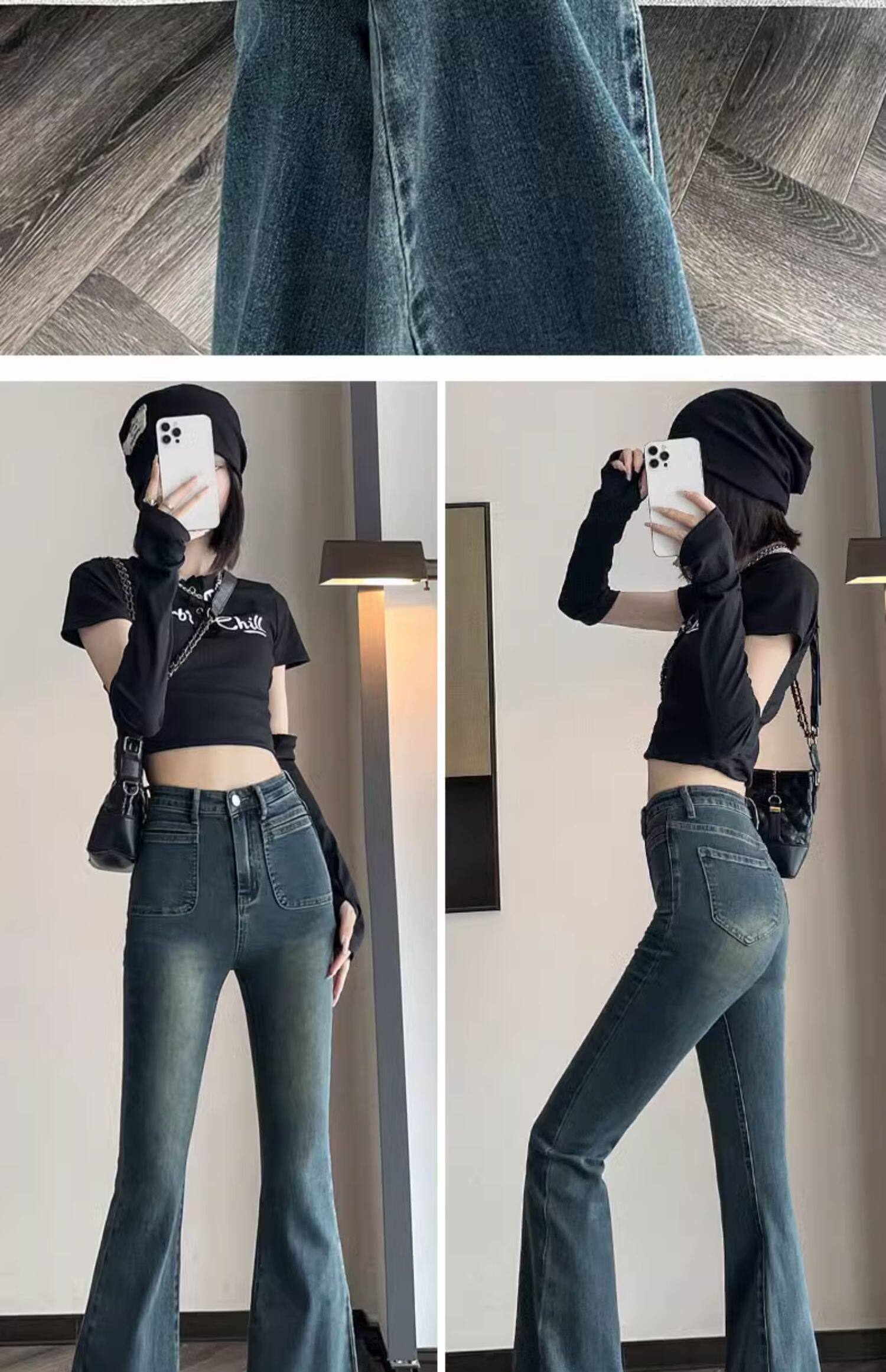 Ретро тонкие осенние джинсы, штаны, приталенные штаны-клёш, коллекция 2023, высокая талия