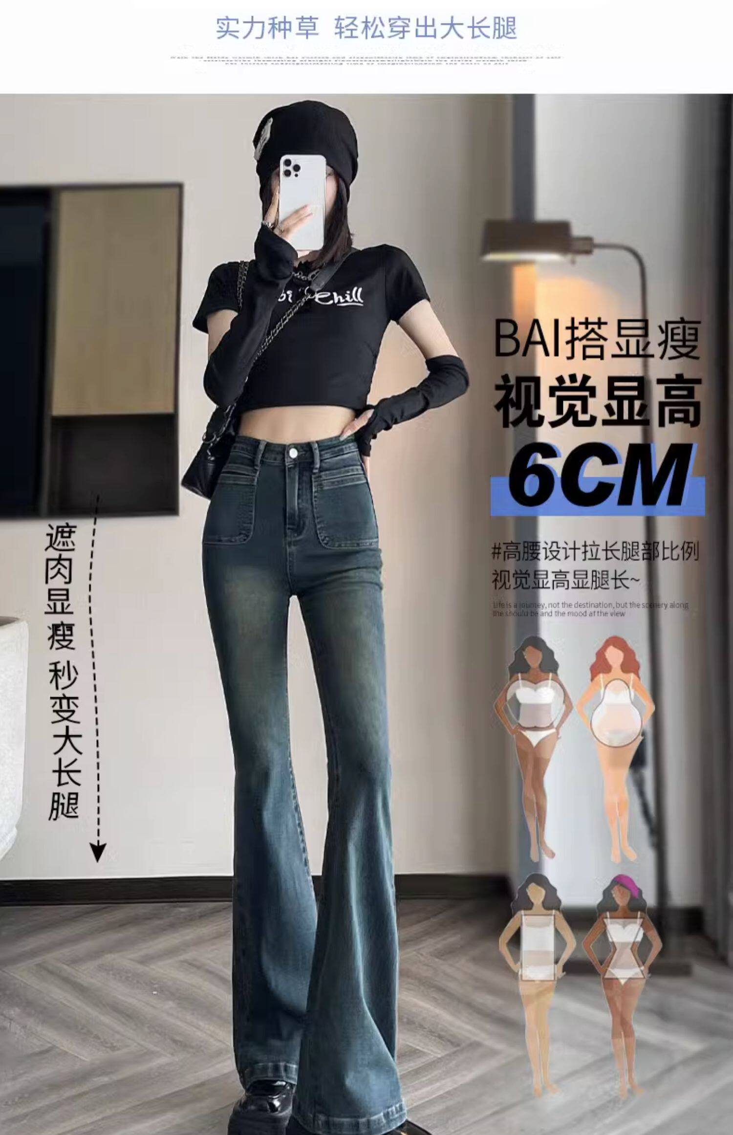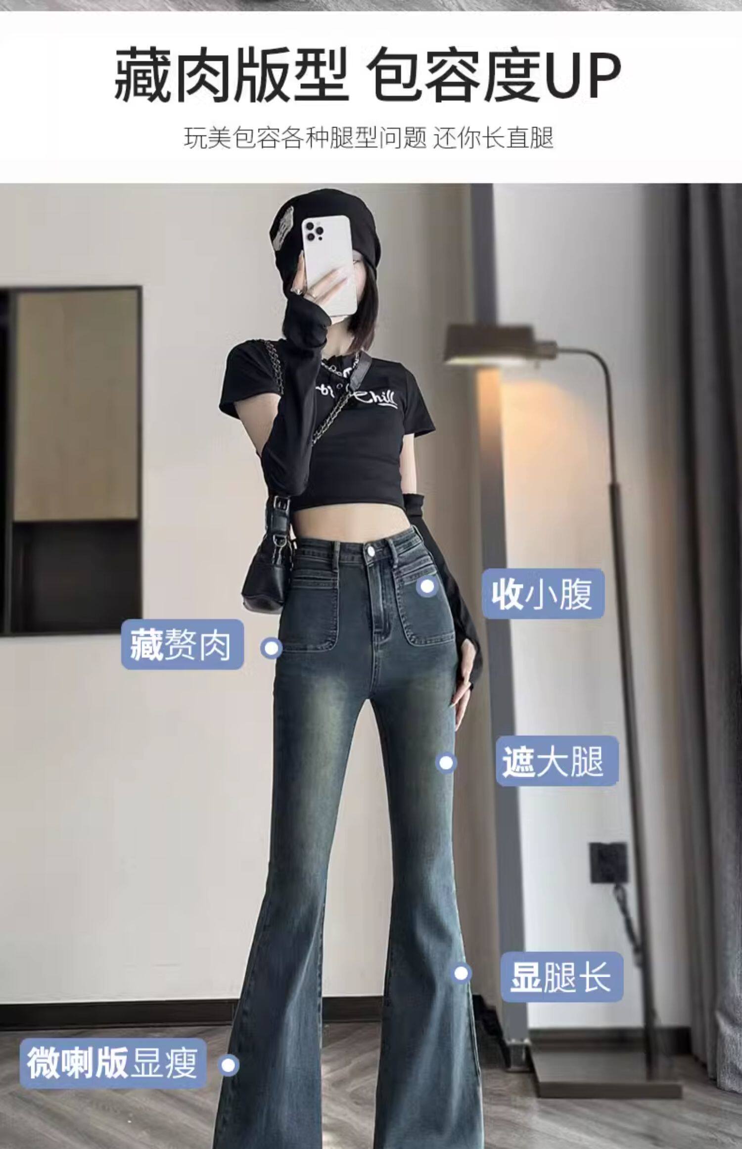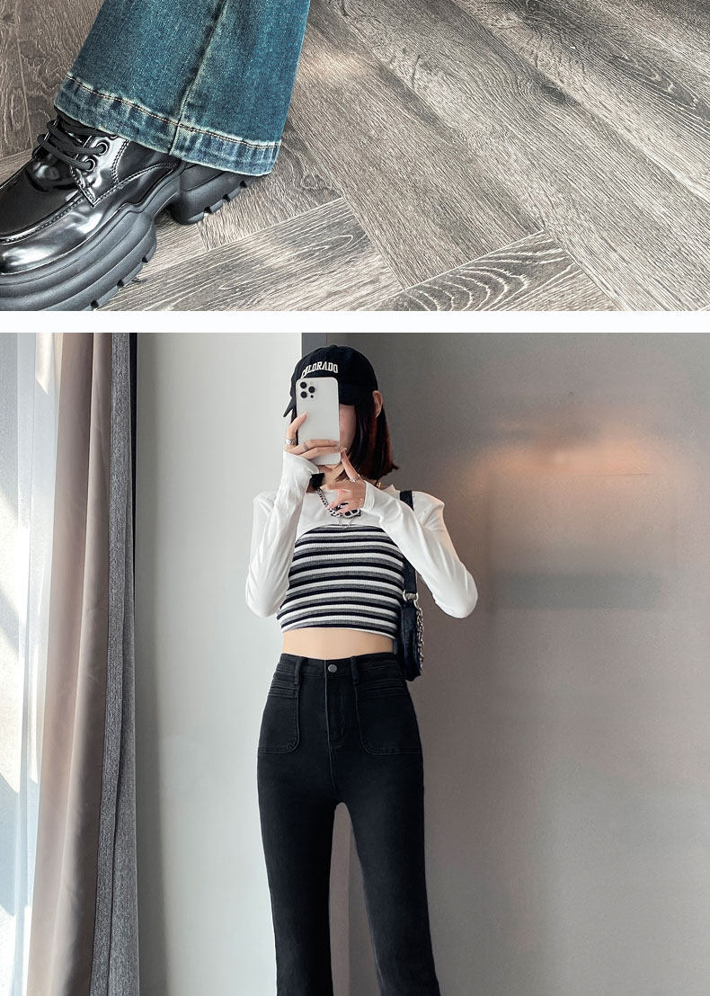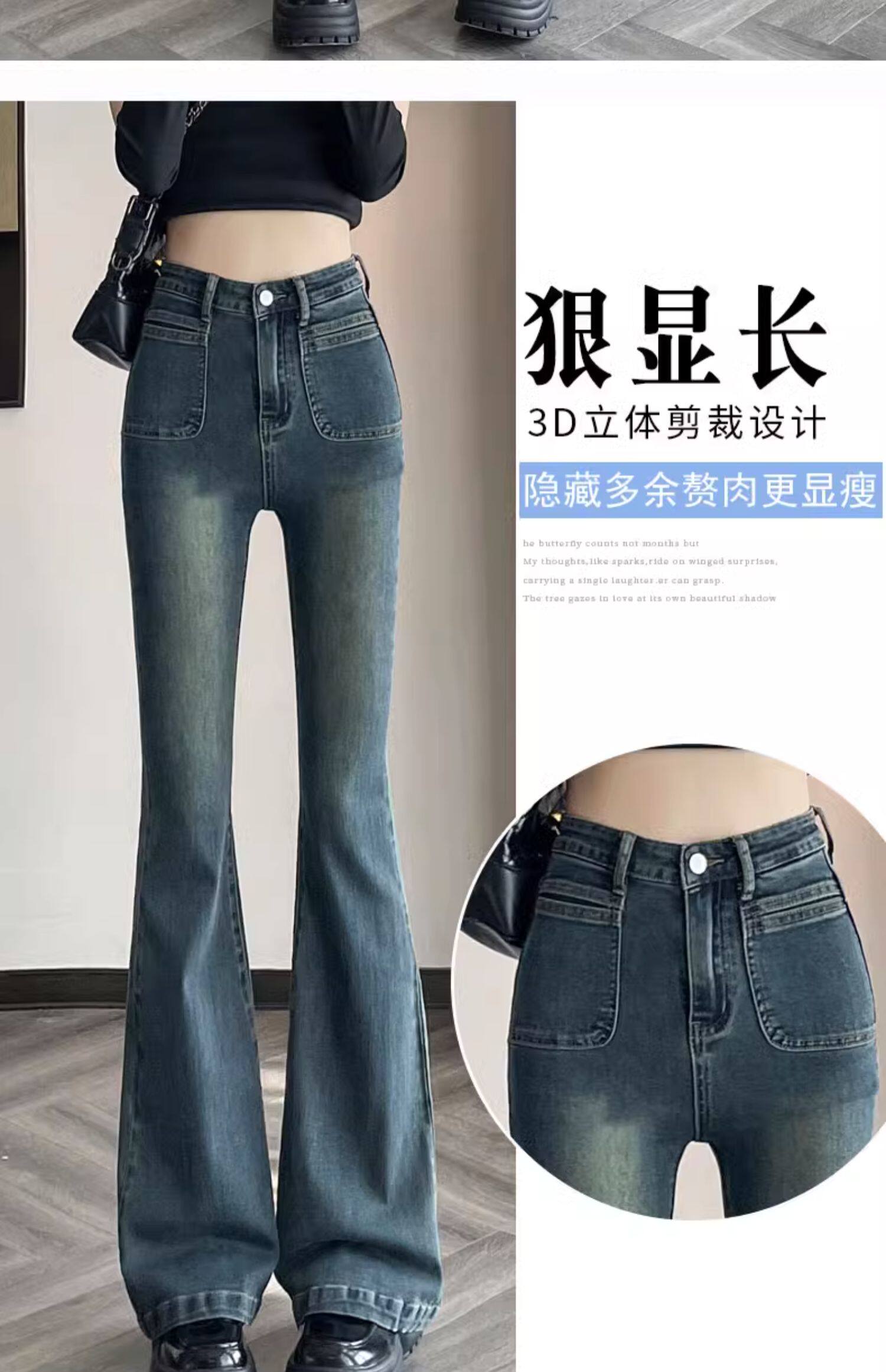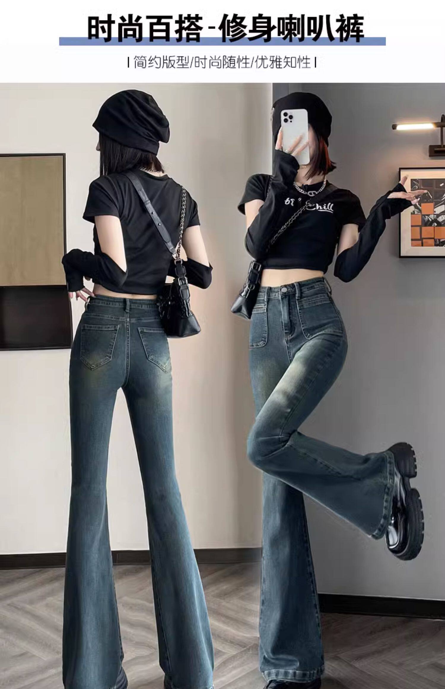 Ретро тонкие осенние джинсы, штаны, приталенные штаны-клёш, коллекция 2023, высокая талия