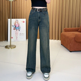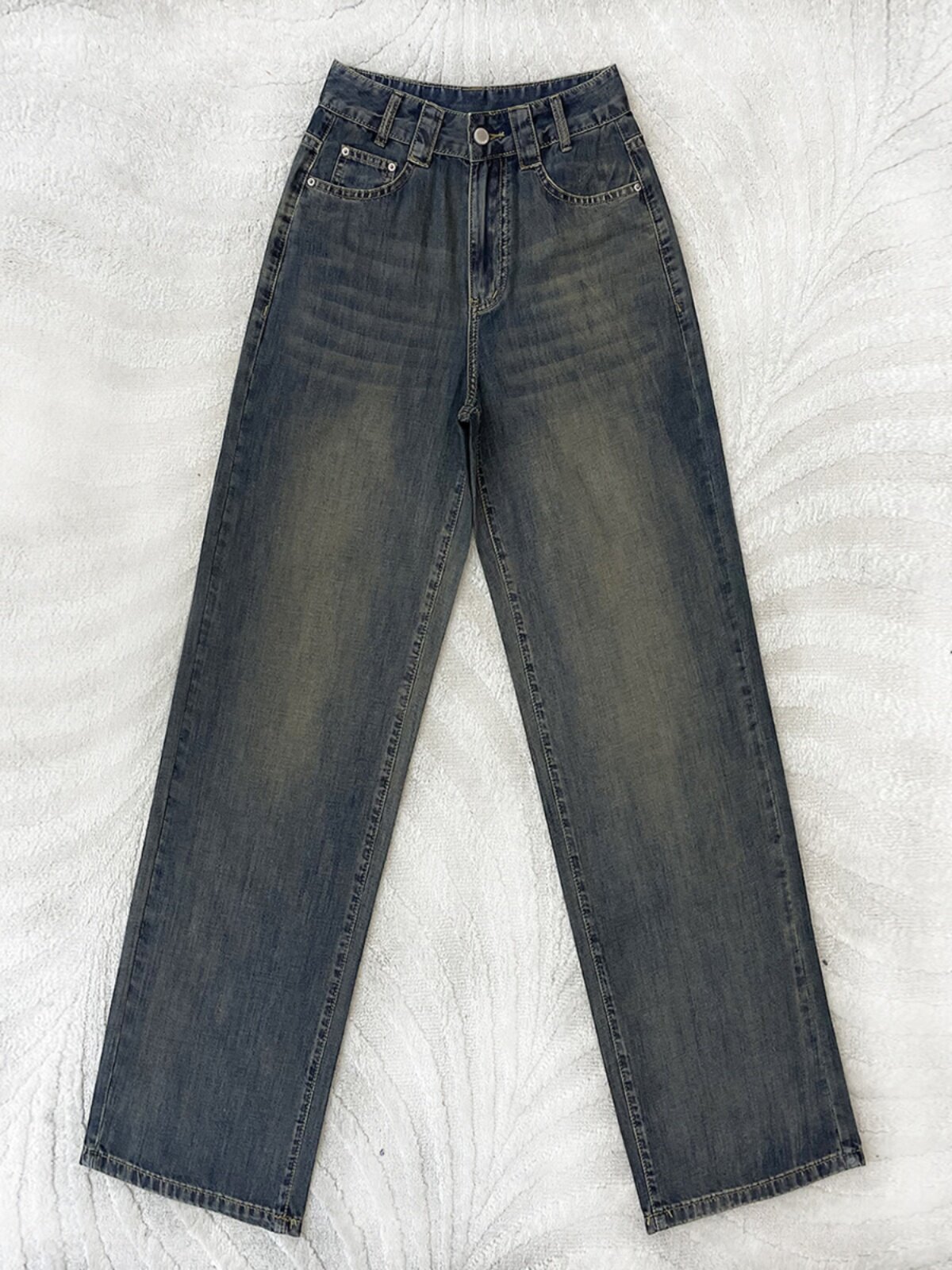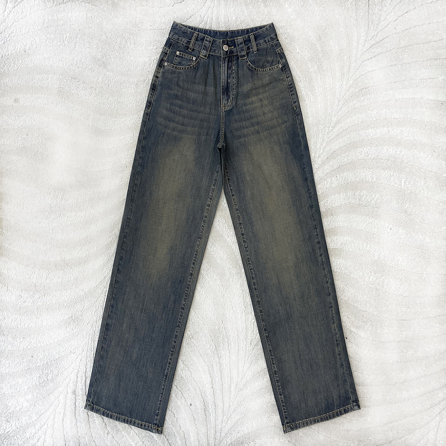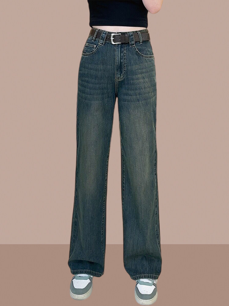Весенние осенние джинсы, ретро штаны, свободный прямой крой, высокая талия