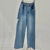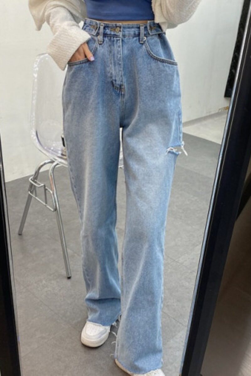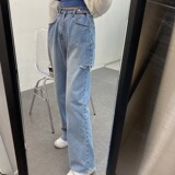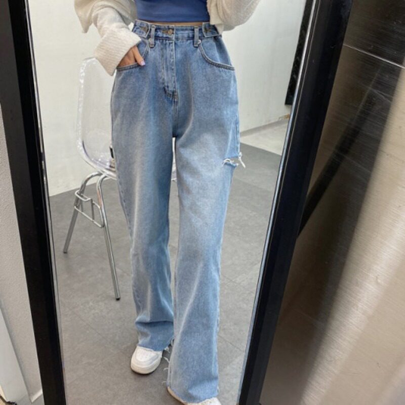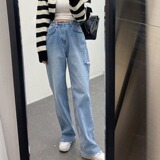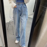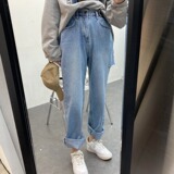 Ретро штаны, джинсы, в корейском стиле, осенние, французский ретро стиль, свободный прямой крой, высокая талия