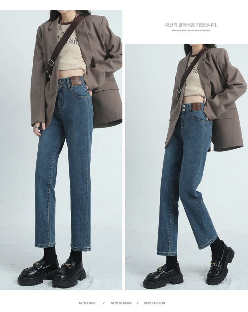 Ретро прямые свободные джинсы, весенние осенние штаны, 2024 года, высокая талия