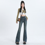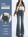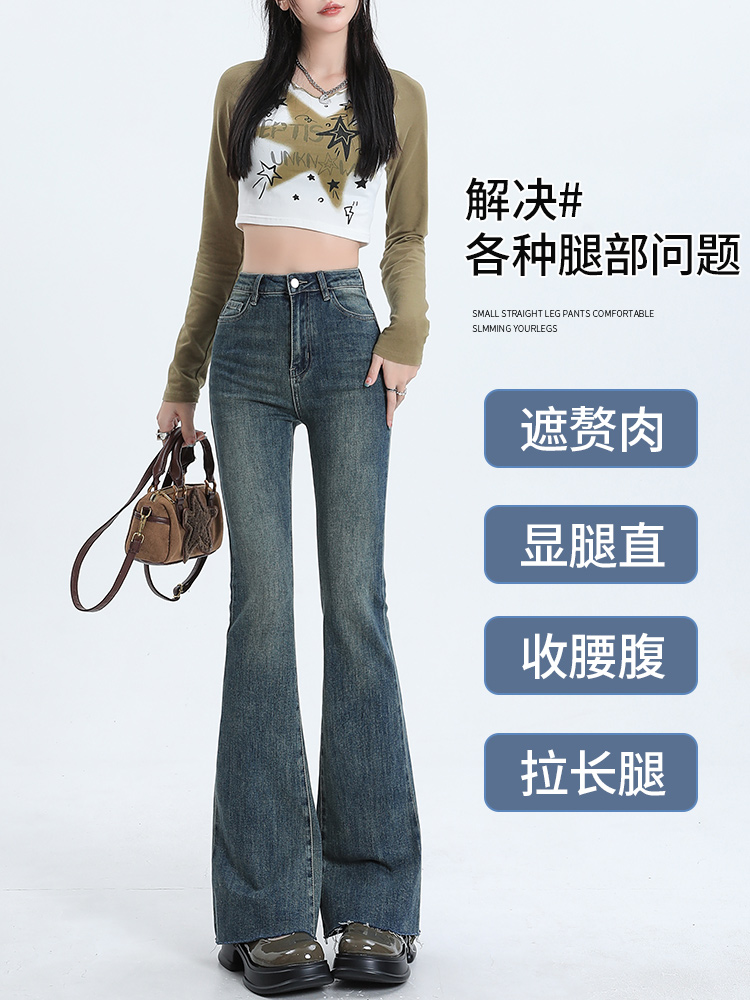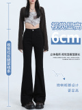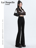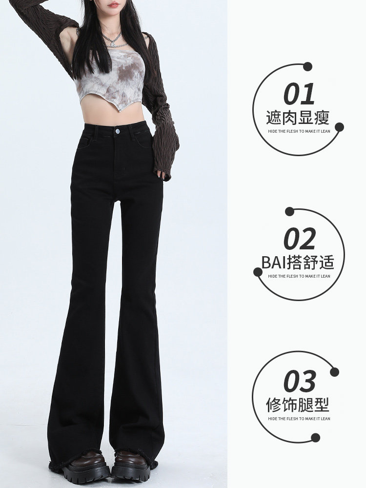 Черные осенние джинсы, приталенные штаны, эластичные штаны-клёш, высокая талия, облегающий крой
