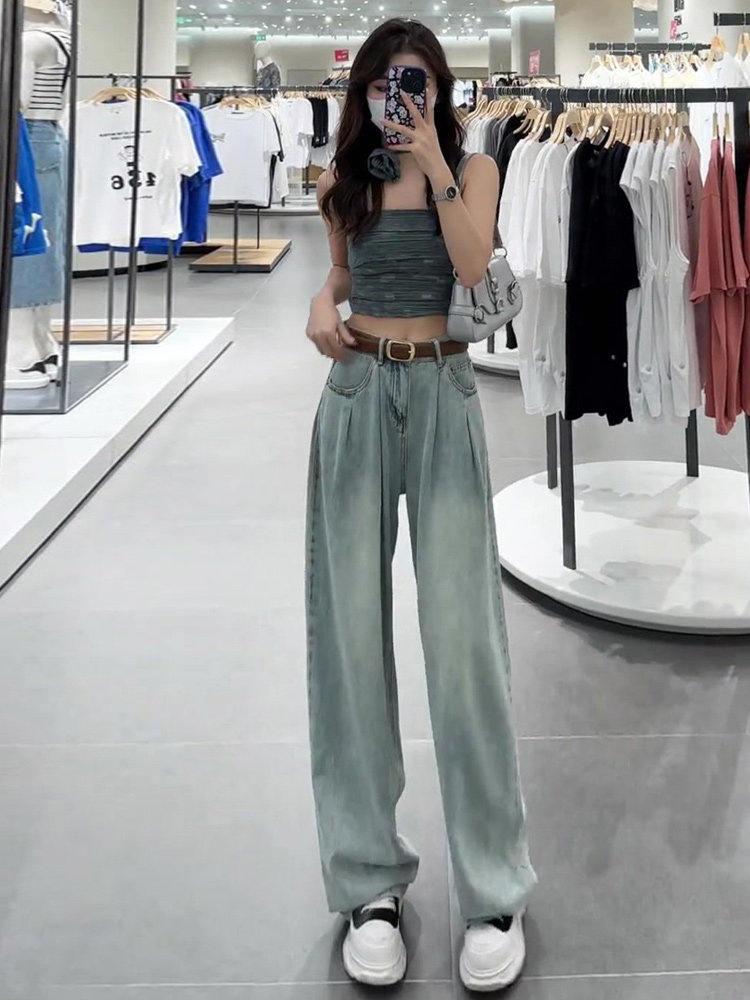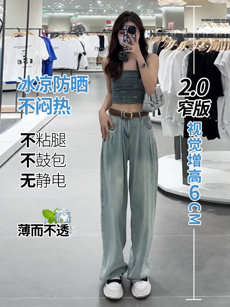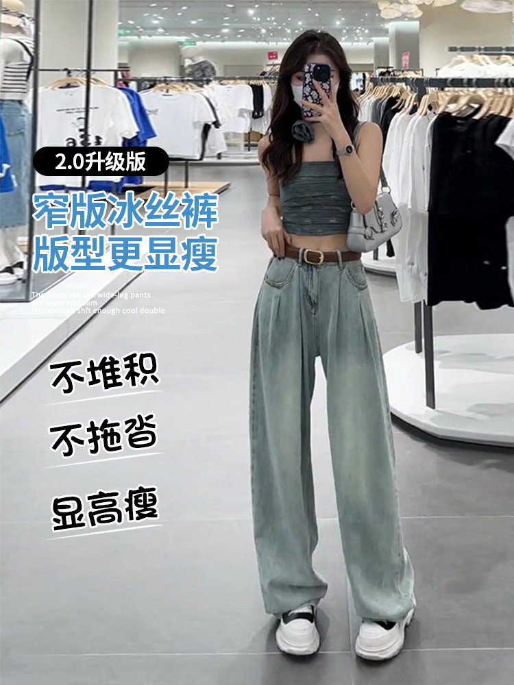 Летние тонкие прямые свободные джинсы, шелковые штаны, 2024 года, подходит для подростков