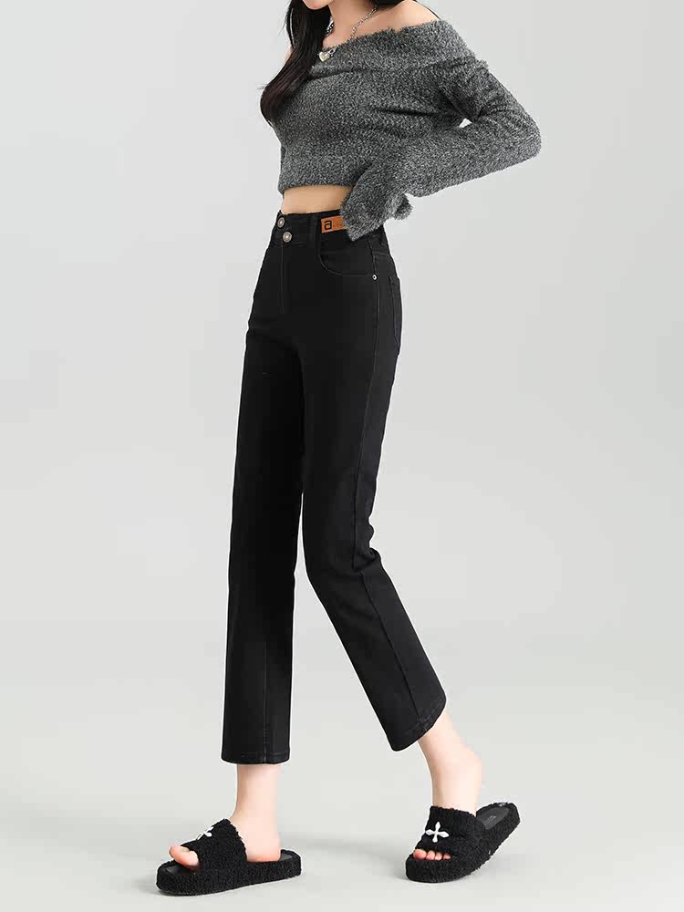 Черные прямые свободные джинсы, штаны, французский стиль, осенние, высокая талия