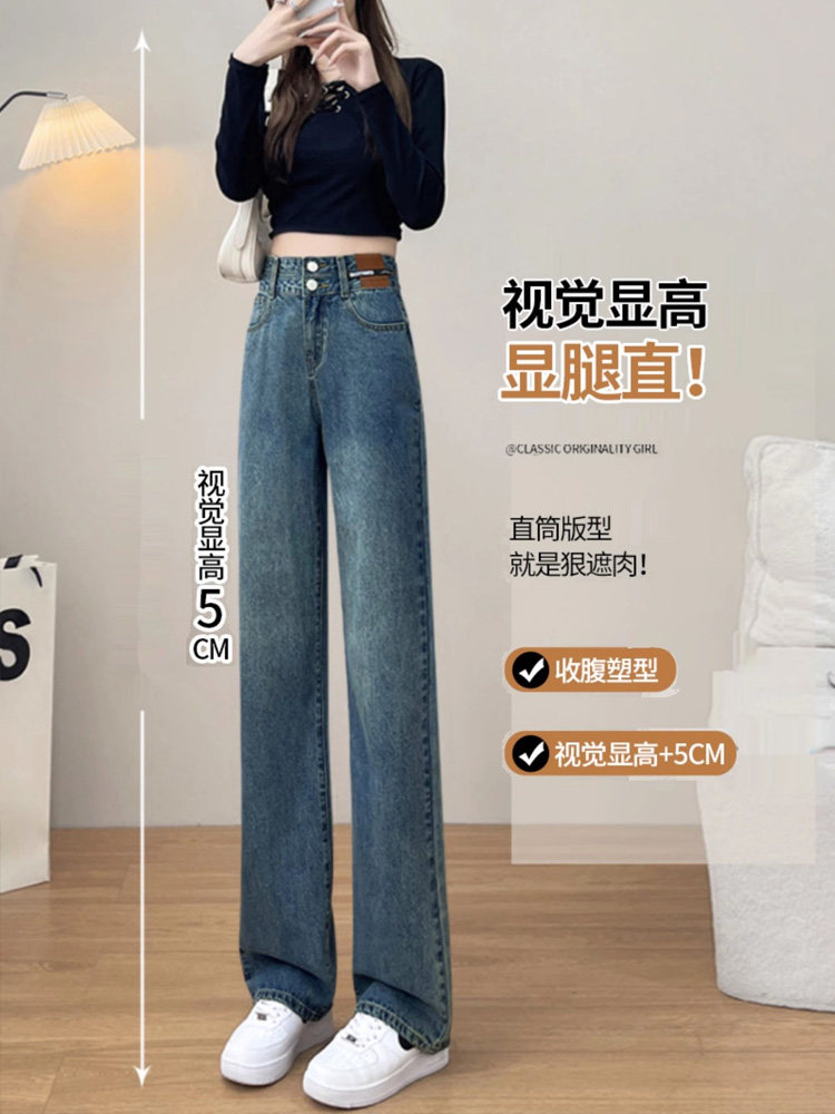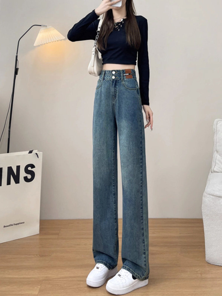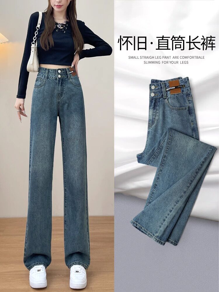 Осенние джинсы, приталенные ретро штаны, высокая талия, свободный прямой крой