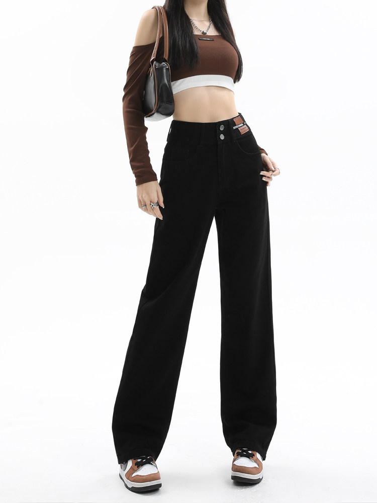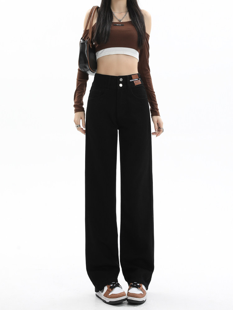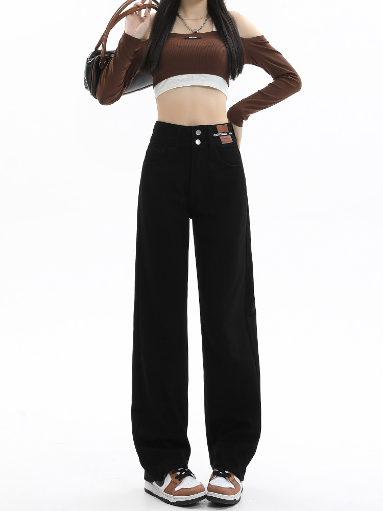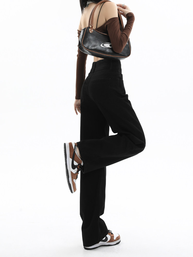 Черные джинсы, осенние дизайнерские штаны, свободный прямой крой, стройный силуэт, высокая талия, большой размер, тренд сезона