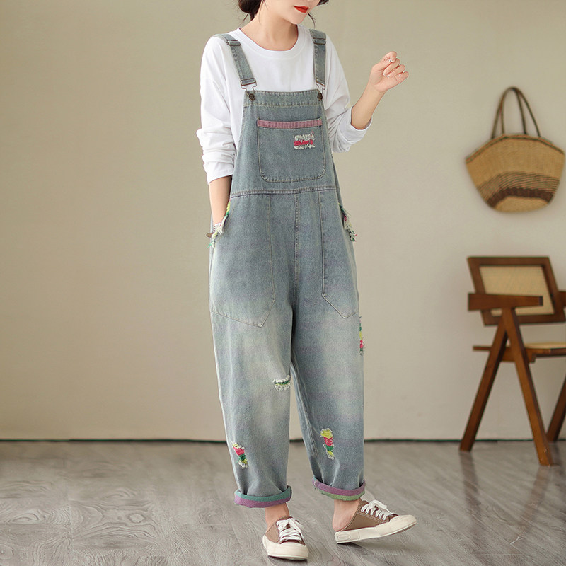 Ретро джинсовый осенний комбинезон, леггинсы, штаны, в корейском стиле, в западном стиле