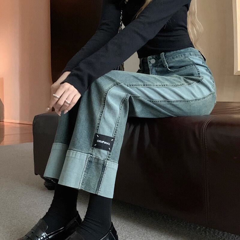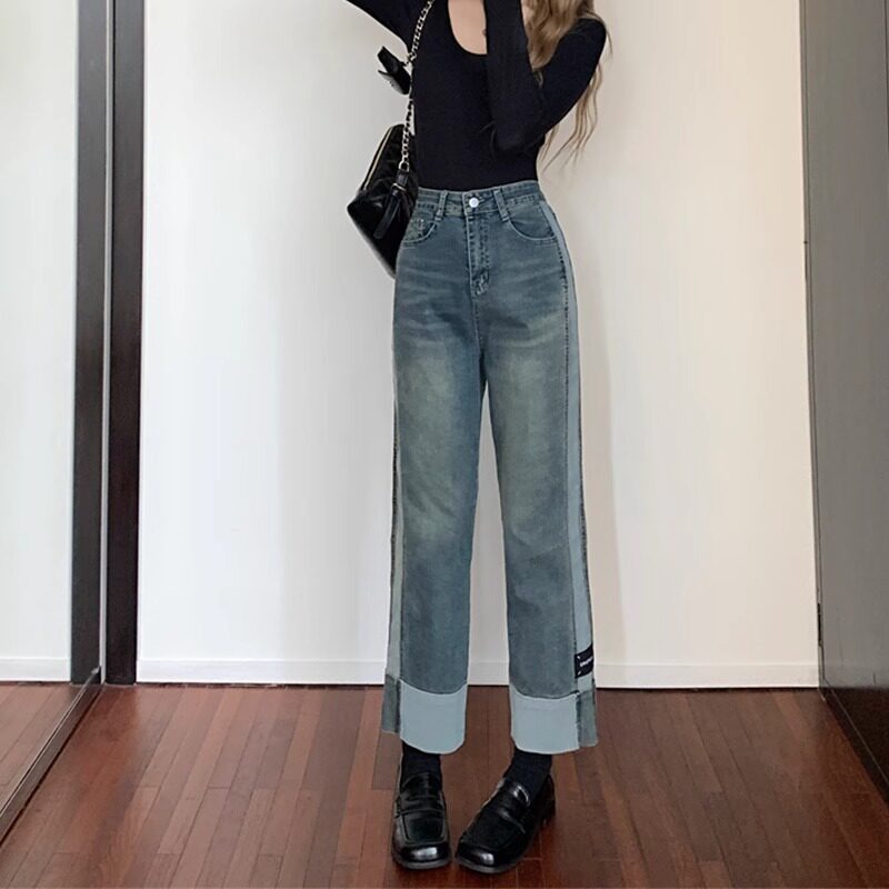 Джинсы, модные штаны, повседневные брюки, большой размер, осенние, свободный крой, в корейском стиле, высокая талия, оверсайз