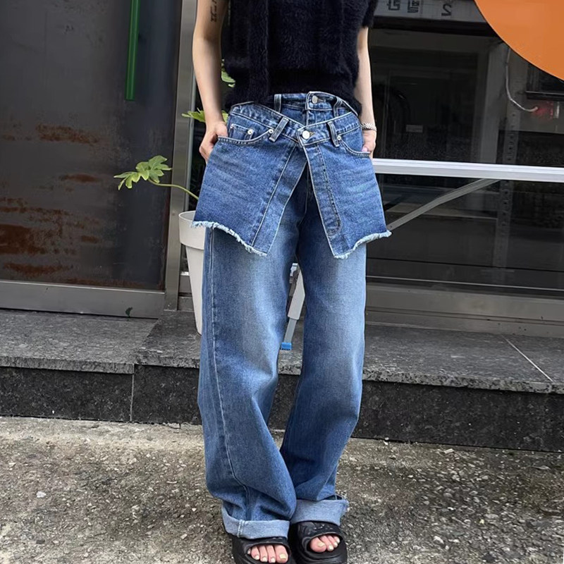 Ретро штаны для отдыха, джинсы, утягивающий пояс на талию, в корейском стиле, осенние, высокая талия