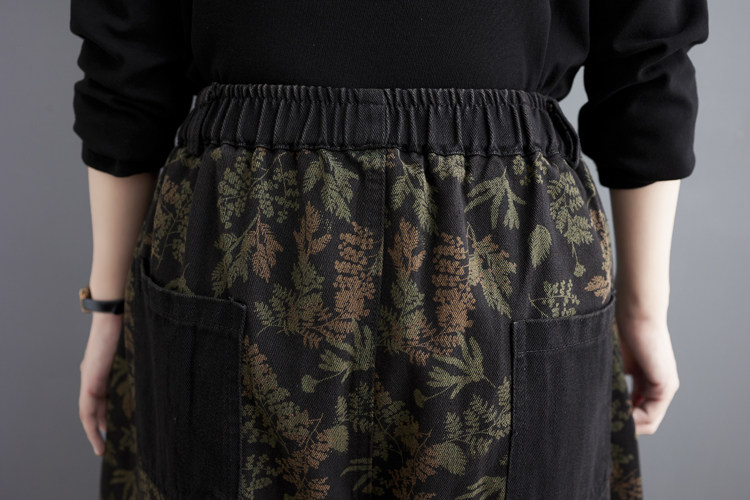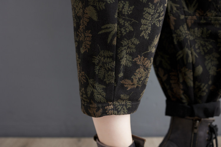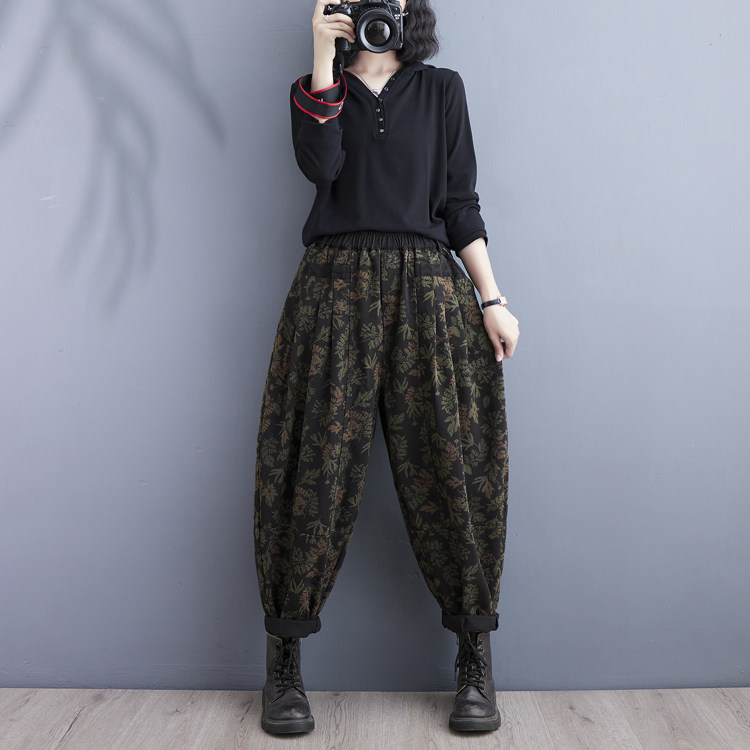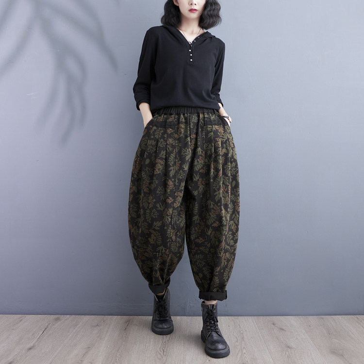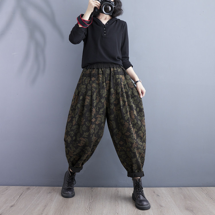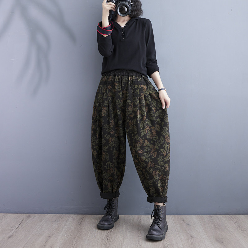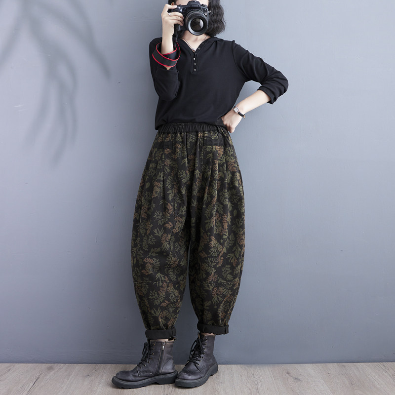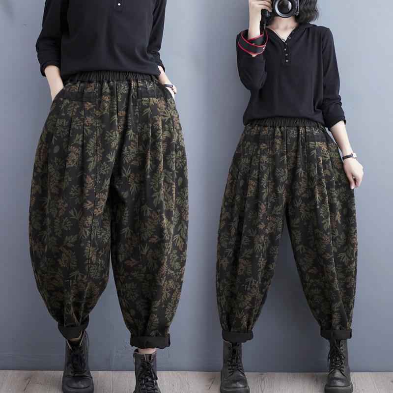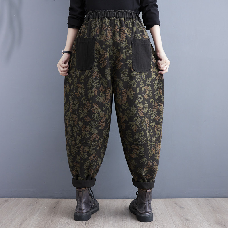 Осенние ретро штаны, джинсы-шаровары, подходит для полных девушек, в западном стиле, цветочный принт, свободный крой, высокая талия