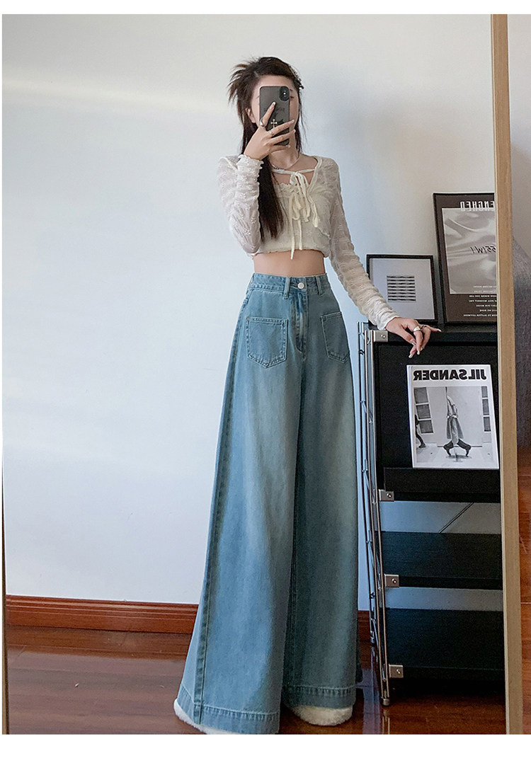 Осенние джинсы, приталенные штаны, 2025 года, высокая талия, свободный прямой крой