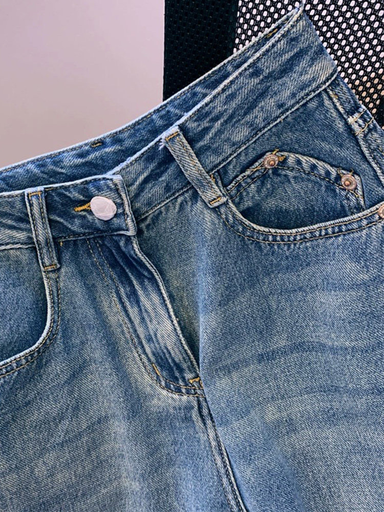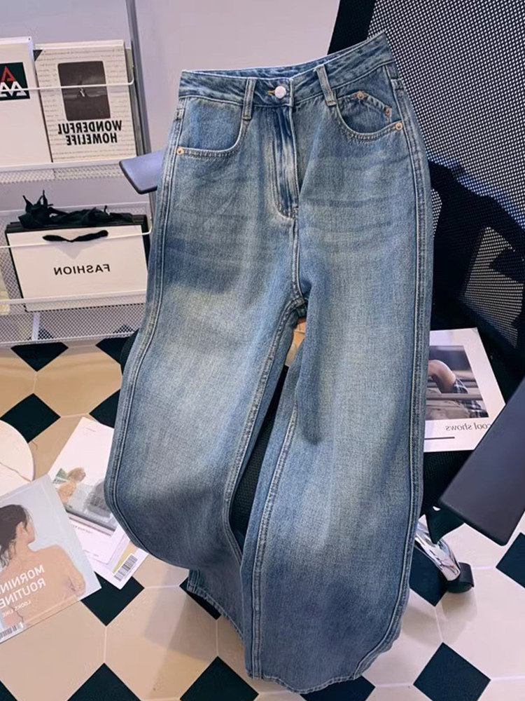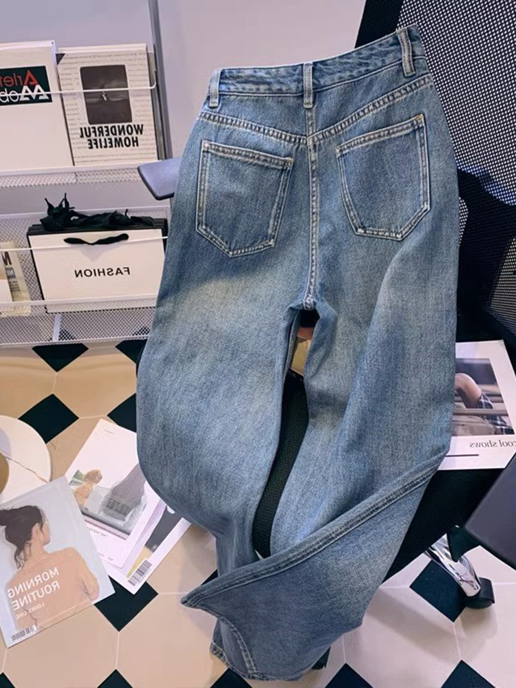 Прямые свободные джинсы, весенние штаны, тренд сезона, большой размер, свободный крой, высокая талия, для формы тела «груша»
