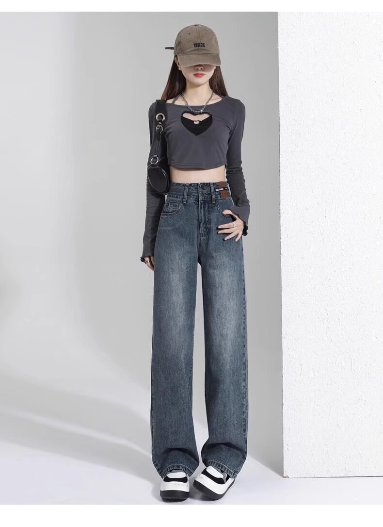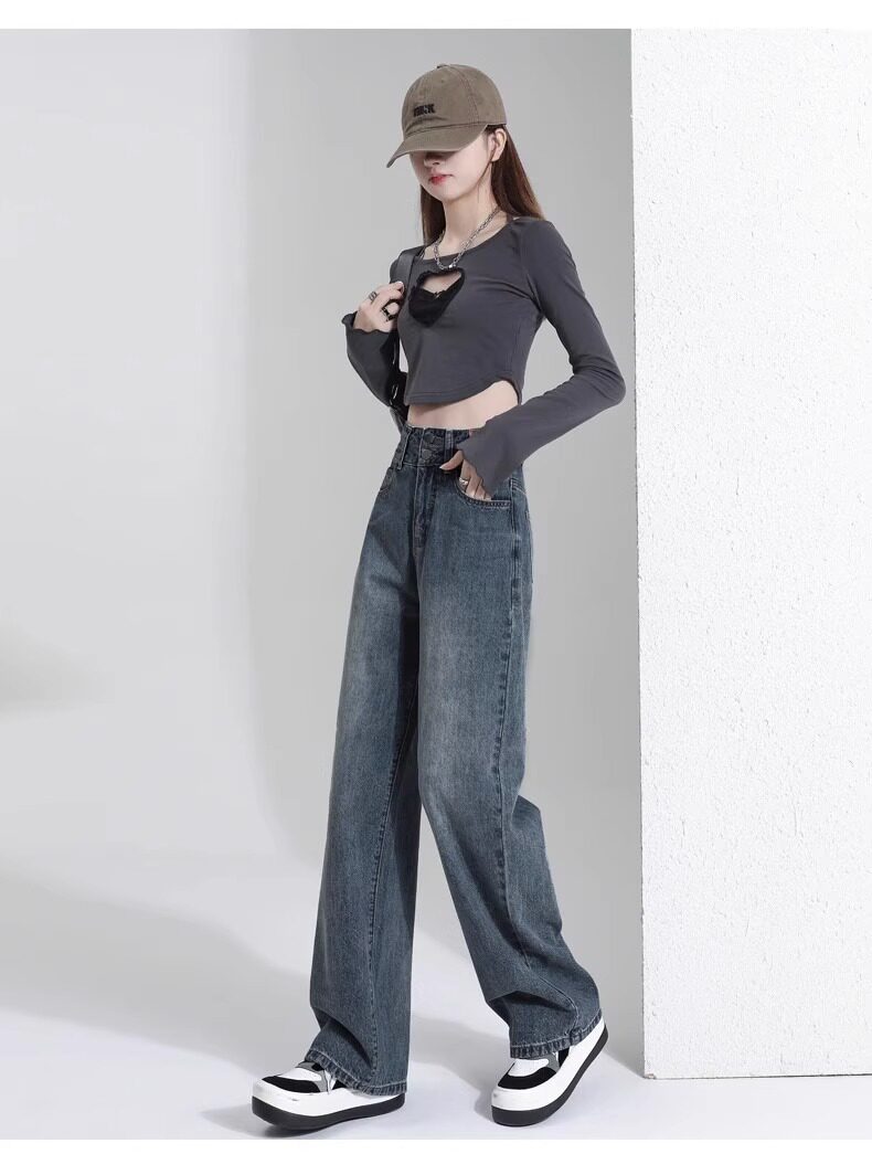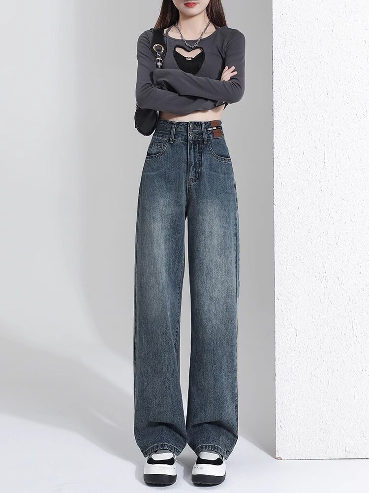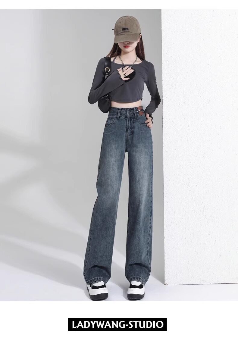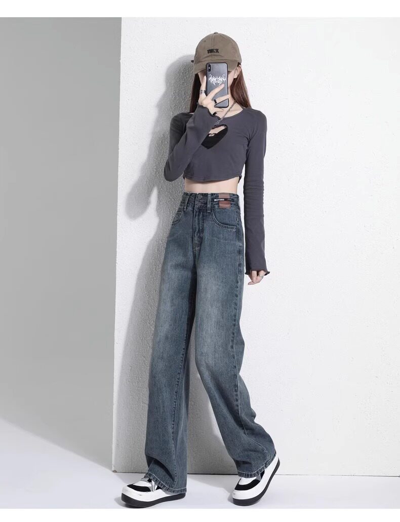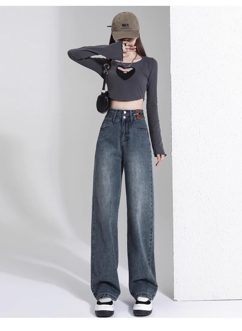 Штаны, тонкие весенние летние прямые свободные джинсы, свободный прямой крой, высокая талия